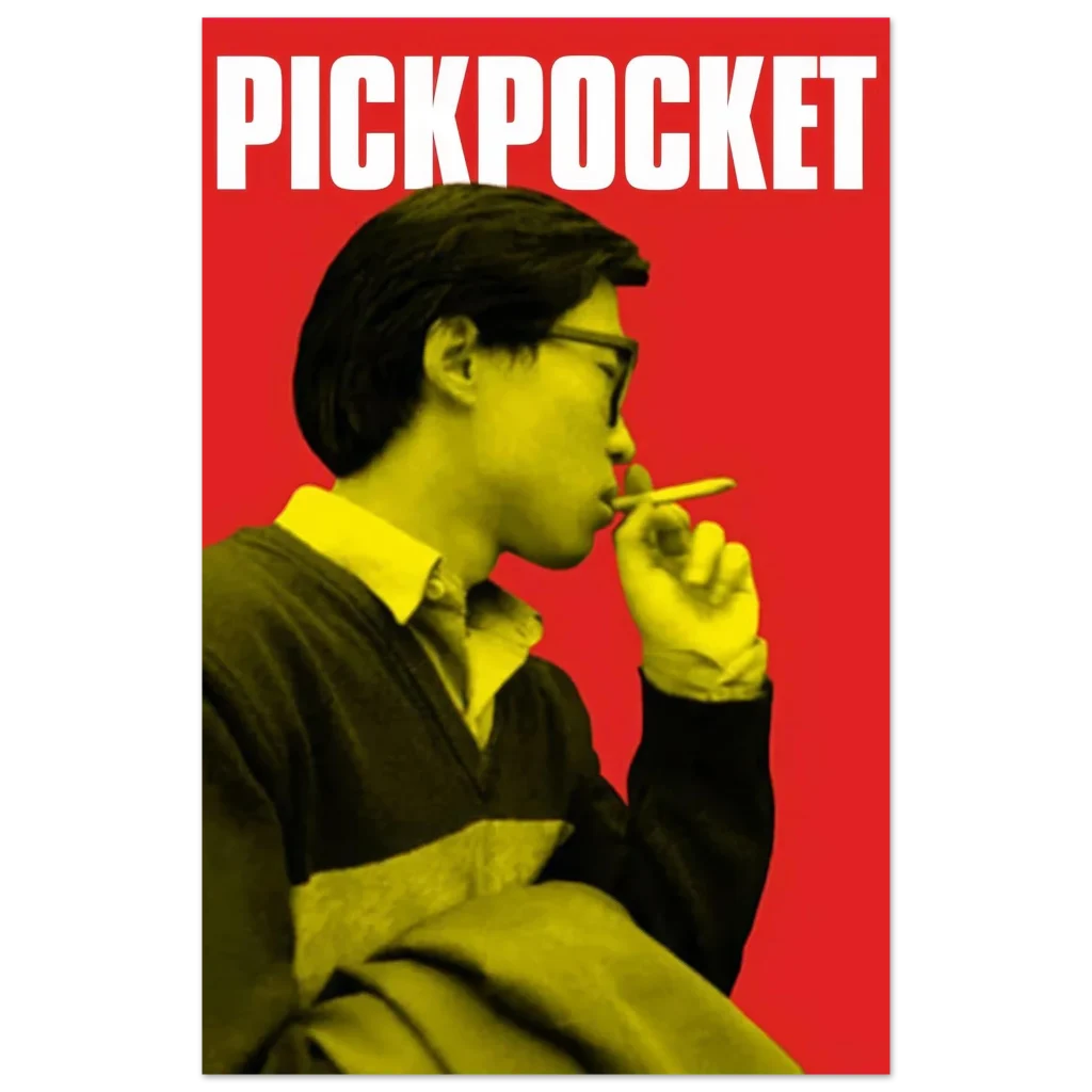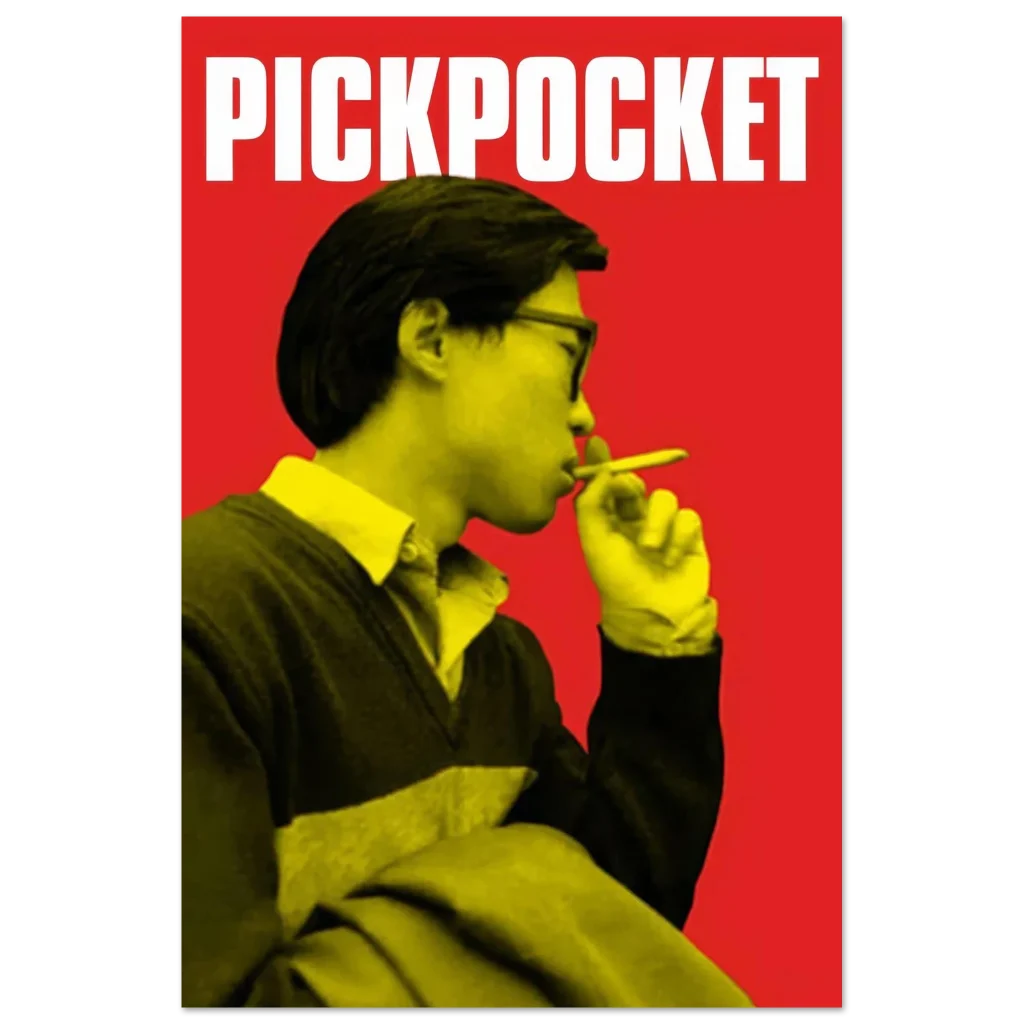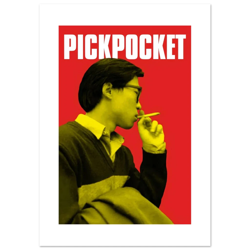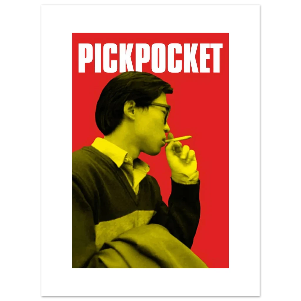 Capture the essence of classic cinema with our ‘Pickpocket’ inspired art print, featuring a striking visual in a bold red and yellow palette. This poster brings a touch of intriguing, retro-cool style to any space, making it perfect for film enthusiasts and those who appreciate minimalist design with maximum impact.