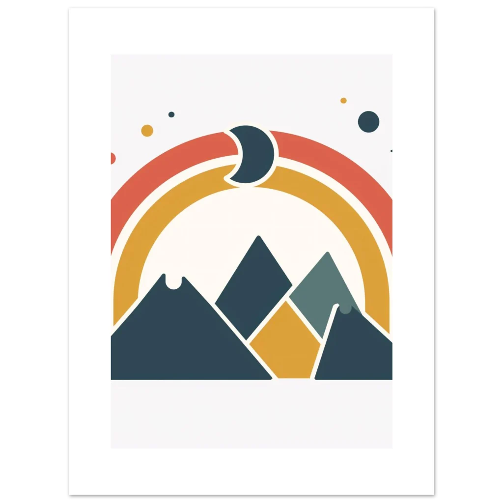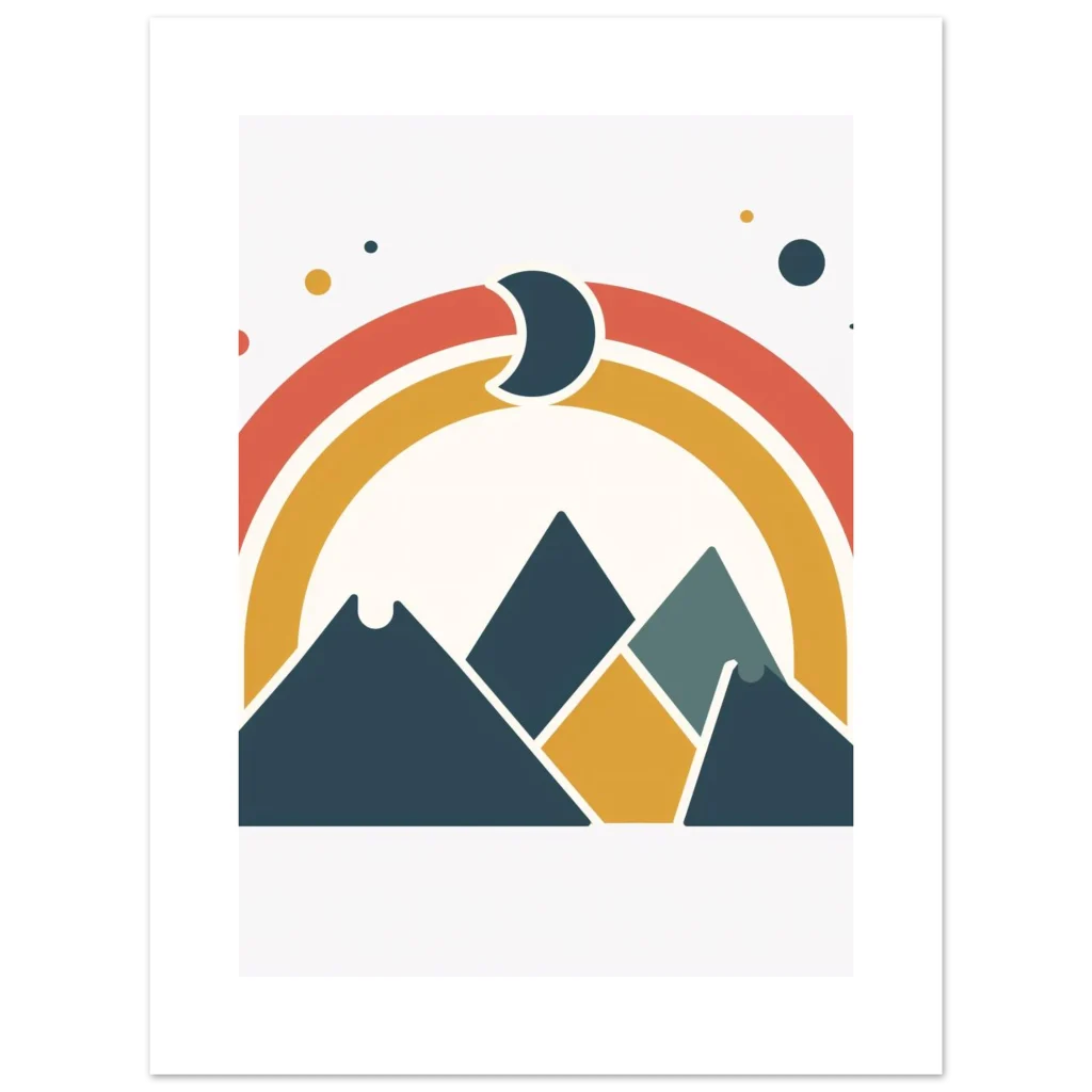 Retro Mountains & Rainbow Premium Matte Paper Poster – Vibrant Boho Landscape Wall Art in Multiple Sizes
