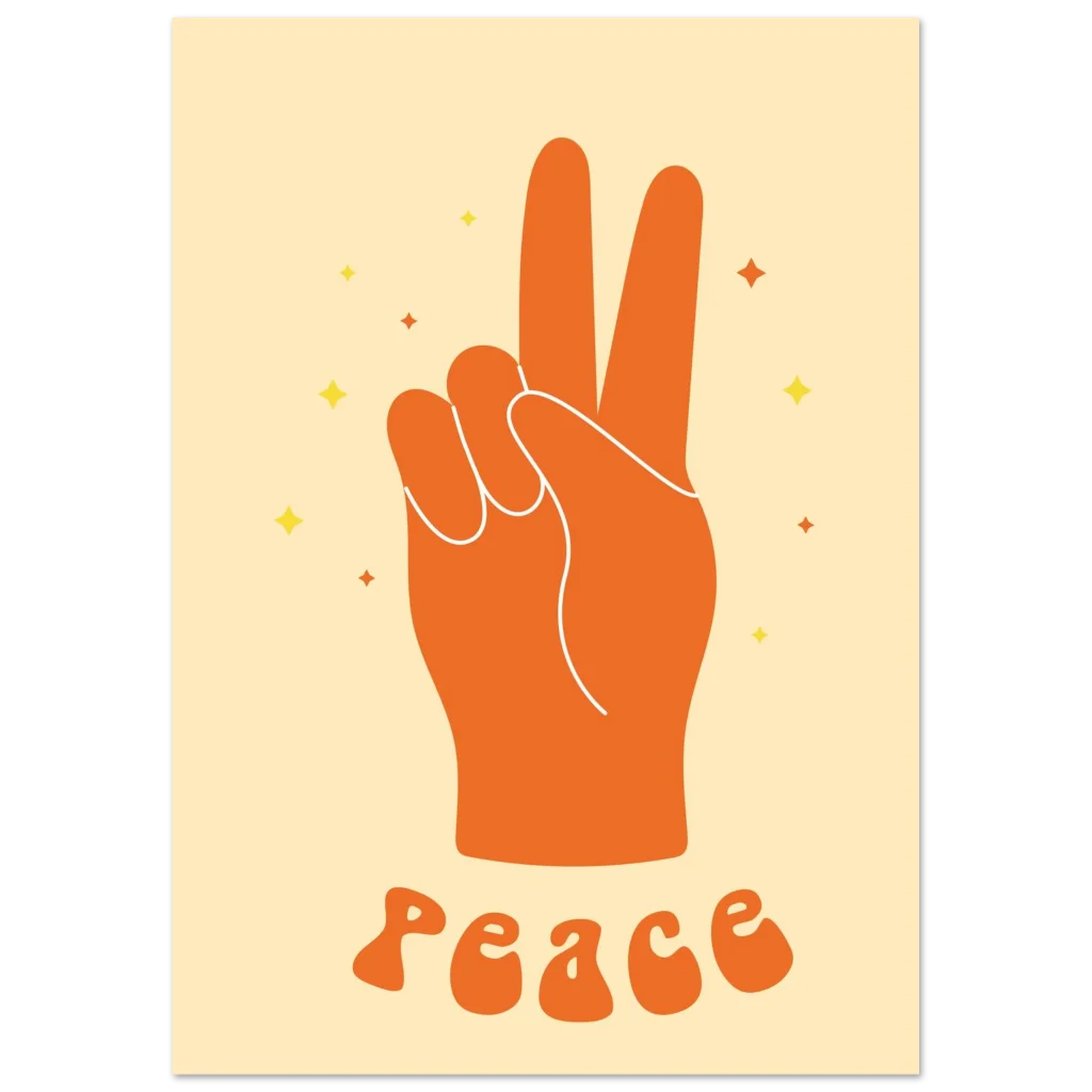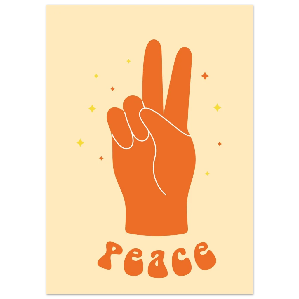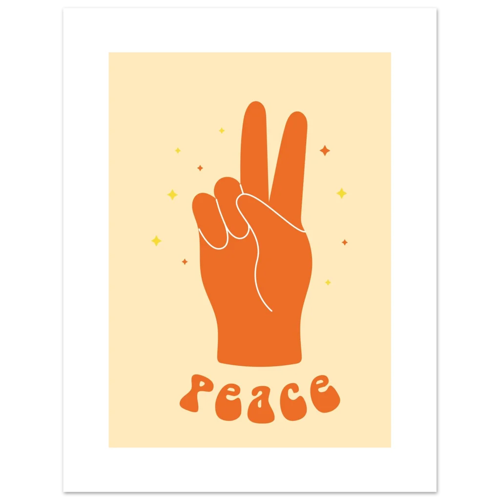 Retro ‘Peace’ Hand Sign Art Print: Premium Matte Poster in Your Preferred Size