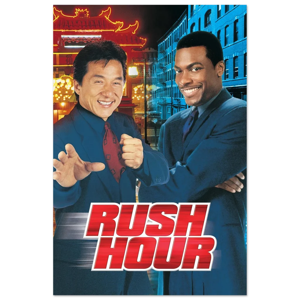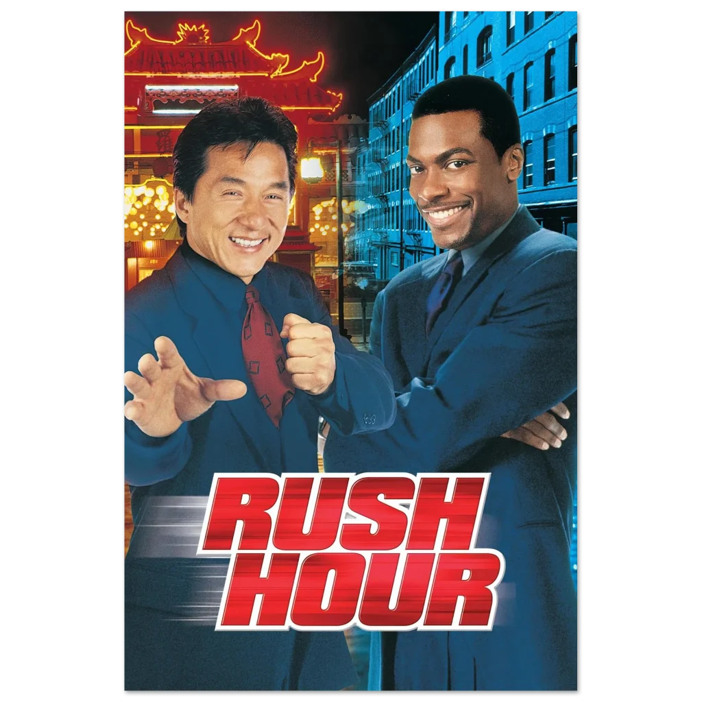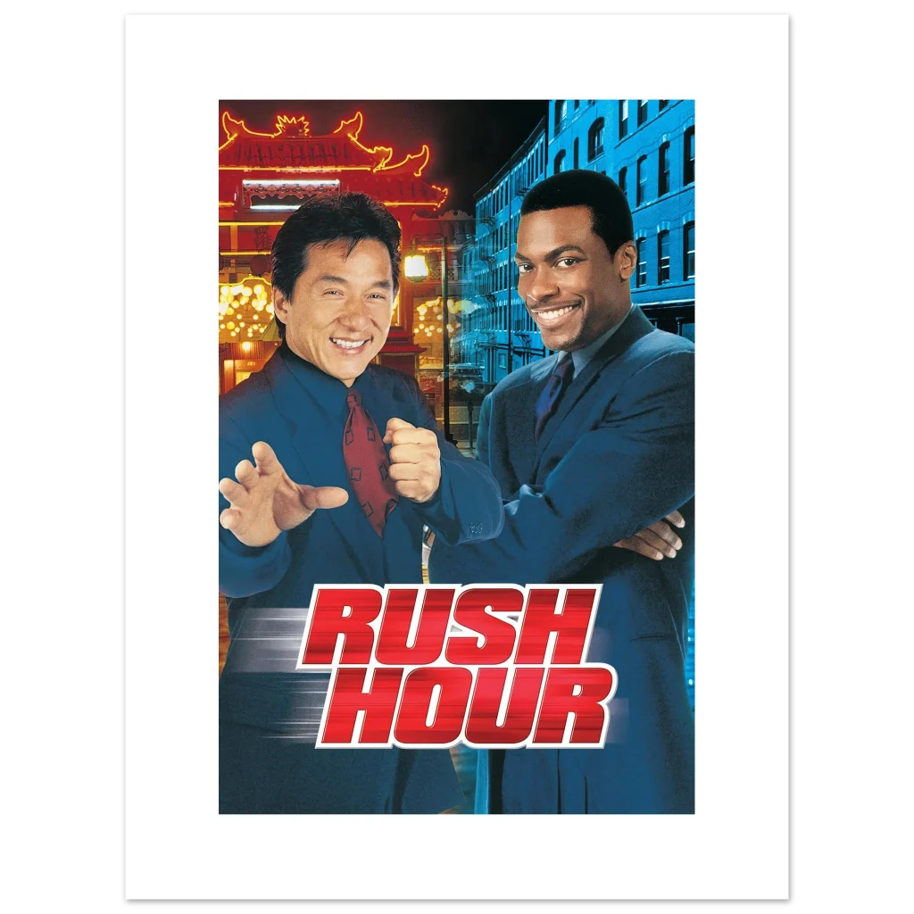 Relive the hilarious and action-packed moments of your favorite buddy-cop classic with our Rush Hour movie poster. Featuring the iconic duo against a vibrant backdrop of city lights, this poster captures the energetic spirit and undeniable chemistry that made the film a global phenomenon. Perfect for fans of high-octane comedy and martial arts mastery, it’s an essential piece for any movie memorabilia collection.