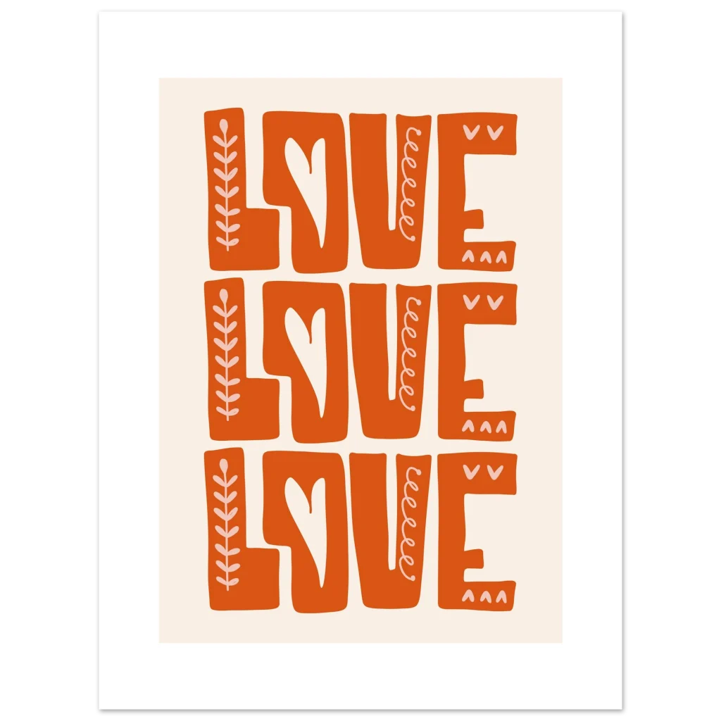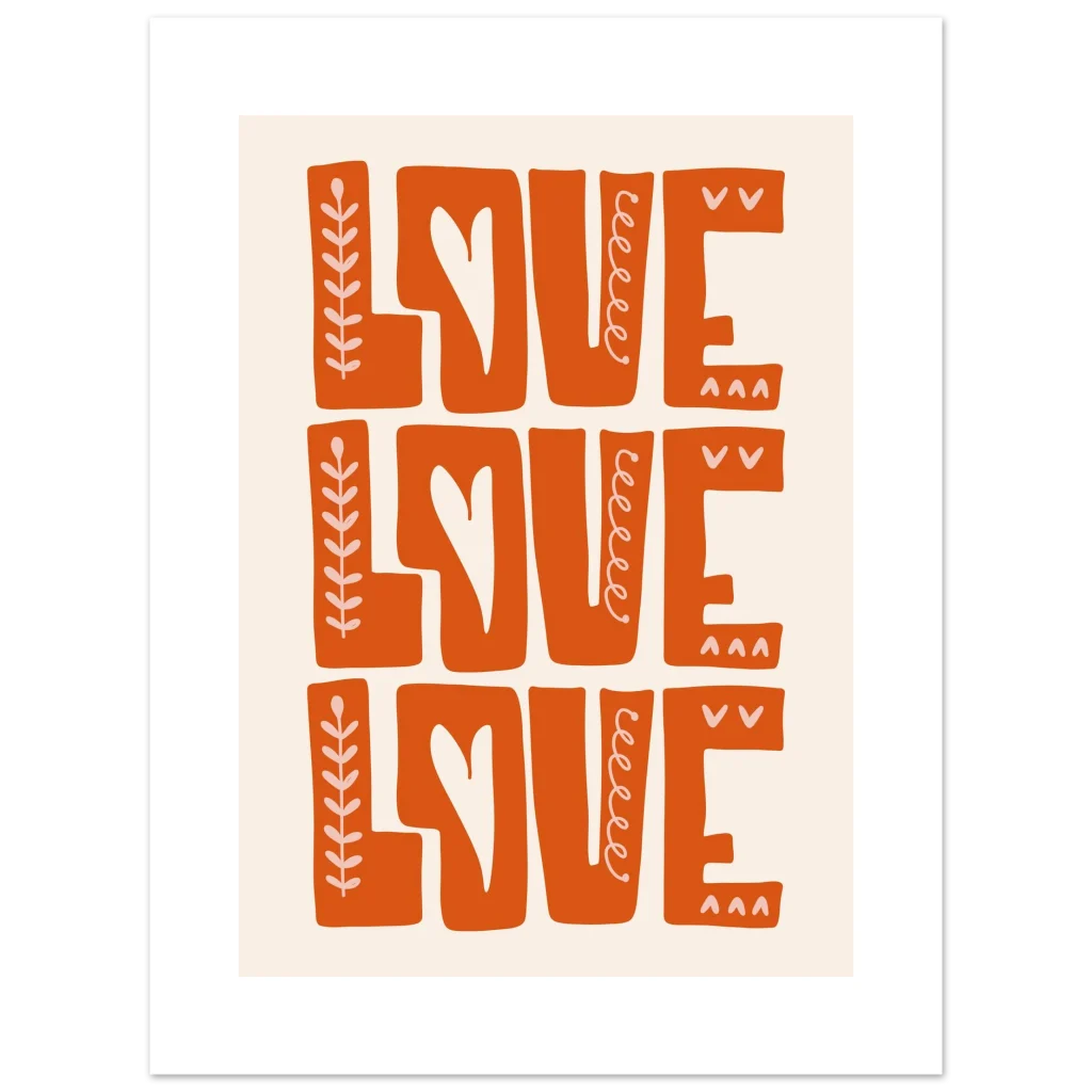 Infuse your space with a heartfelt, artisanal touch with our “Love” block letter art print. Featuring a warm, earthy terracotta palette and charming, hand-drawn botanical and whimsical details, this poster brings a cozy, rustic-chic vibe to any room. It’s the perfect accent for a bohemian nursery, a warm living room, or a unique gift for someone special.