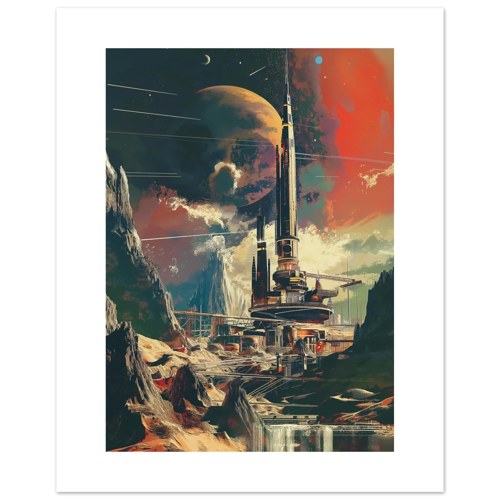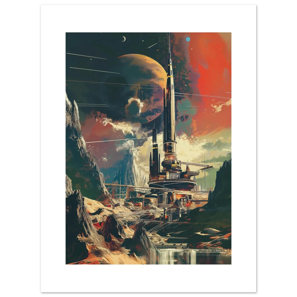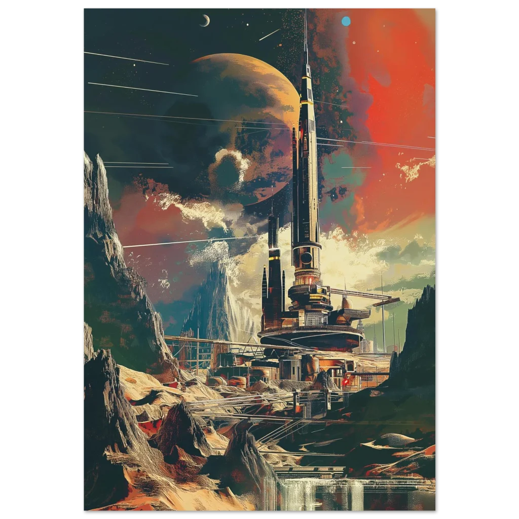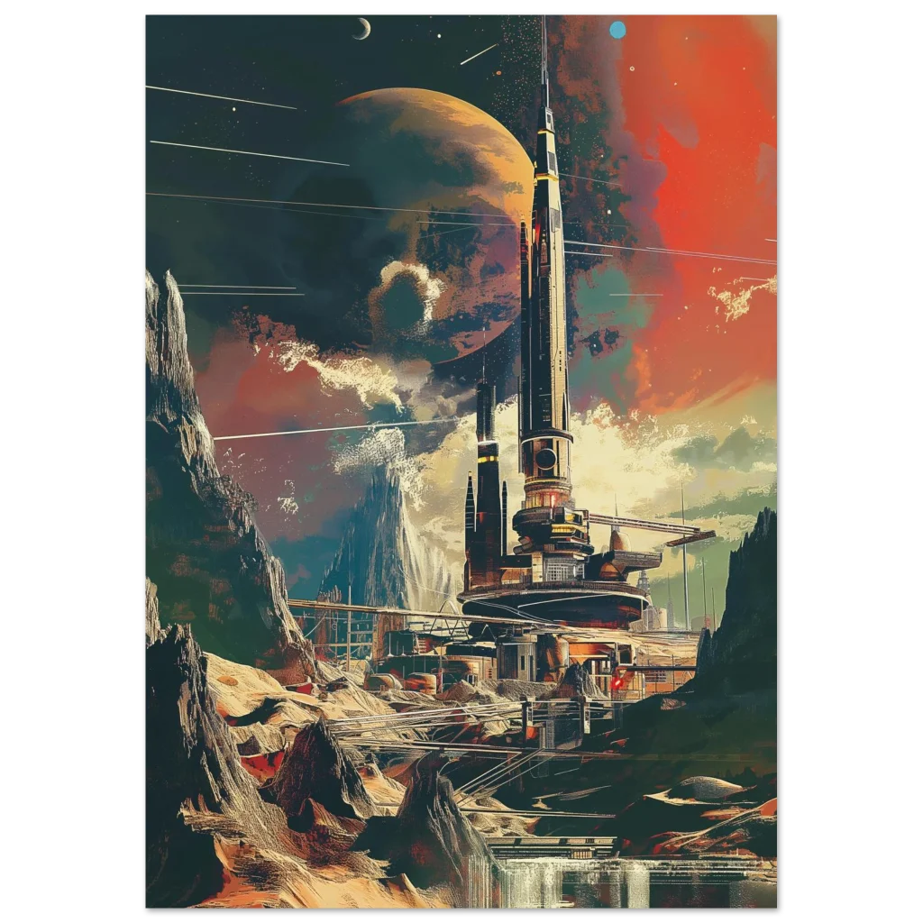 Step into a vivid retro-futuristic landscape with our “Sci-Fi Oasis” poster, capturing the awe-inspiring vision of a Mars colony bathed in the fiery glow of a distant planet. This piece transports you to a world where human ingenuity meets alien grandeur, perfect for igniting conversation and inspiring dreams of interstellar adventure in any room.