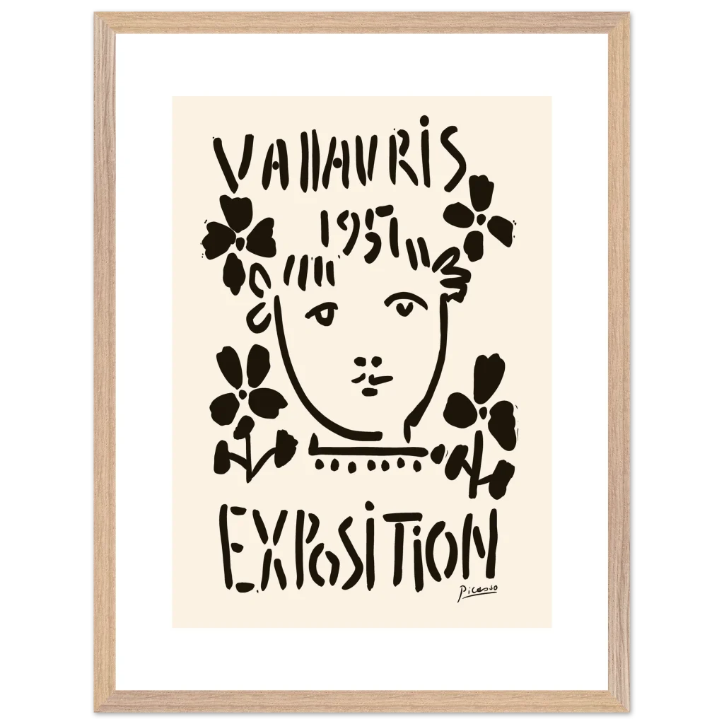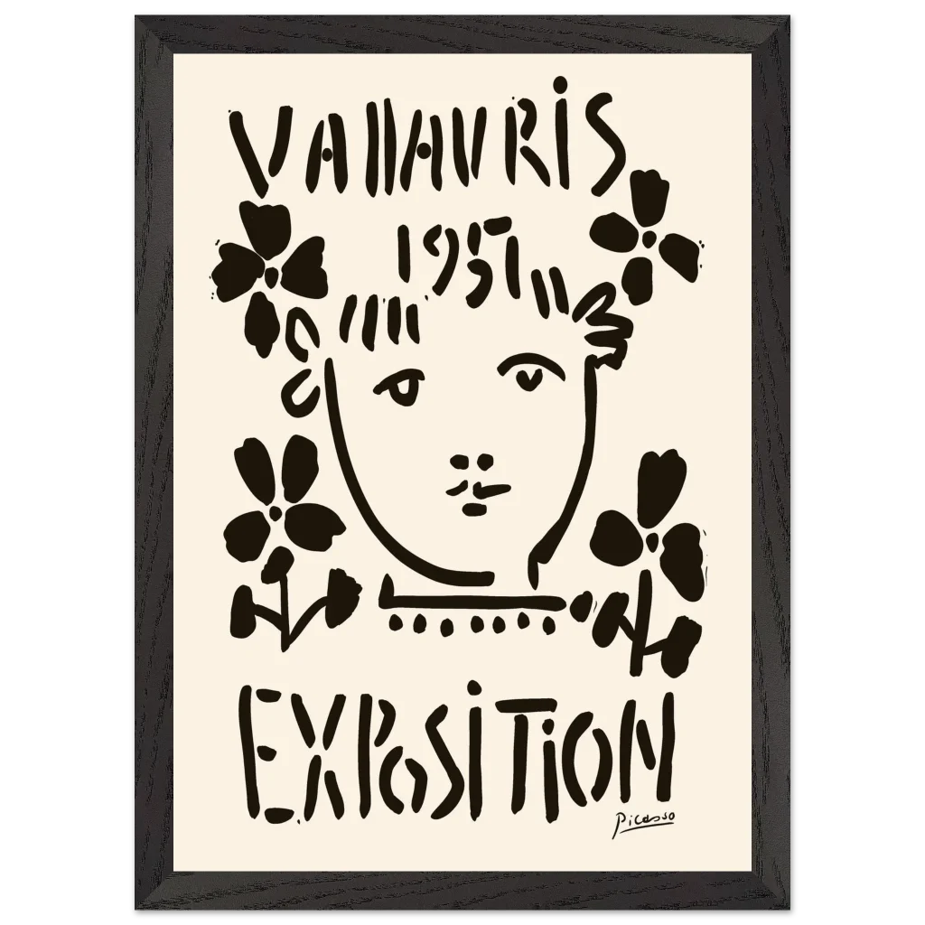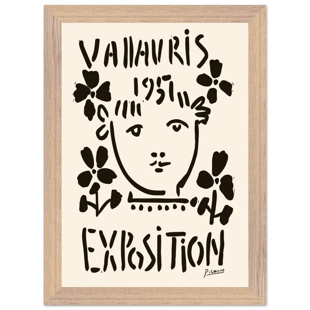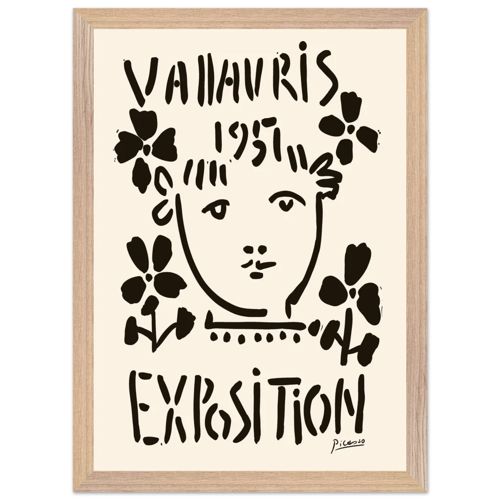 Vallauris 1957 Exposition Poster – Picasso Line Art Wall Art – Premium Wooden Framed Print with Matte Paper
