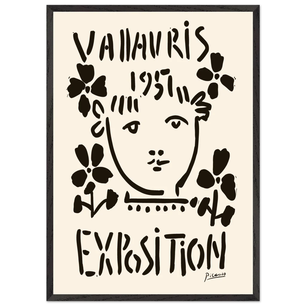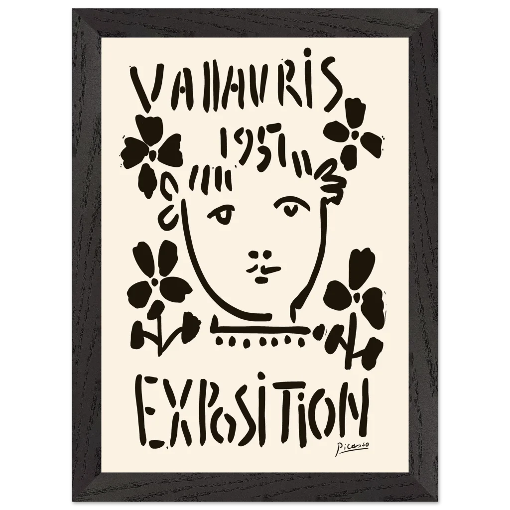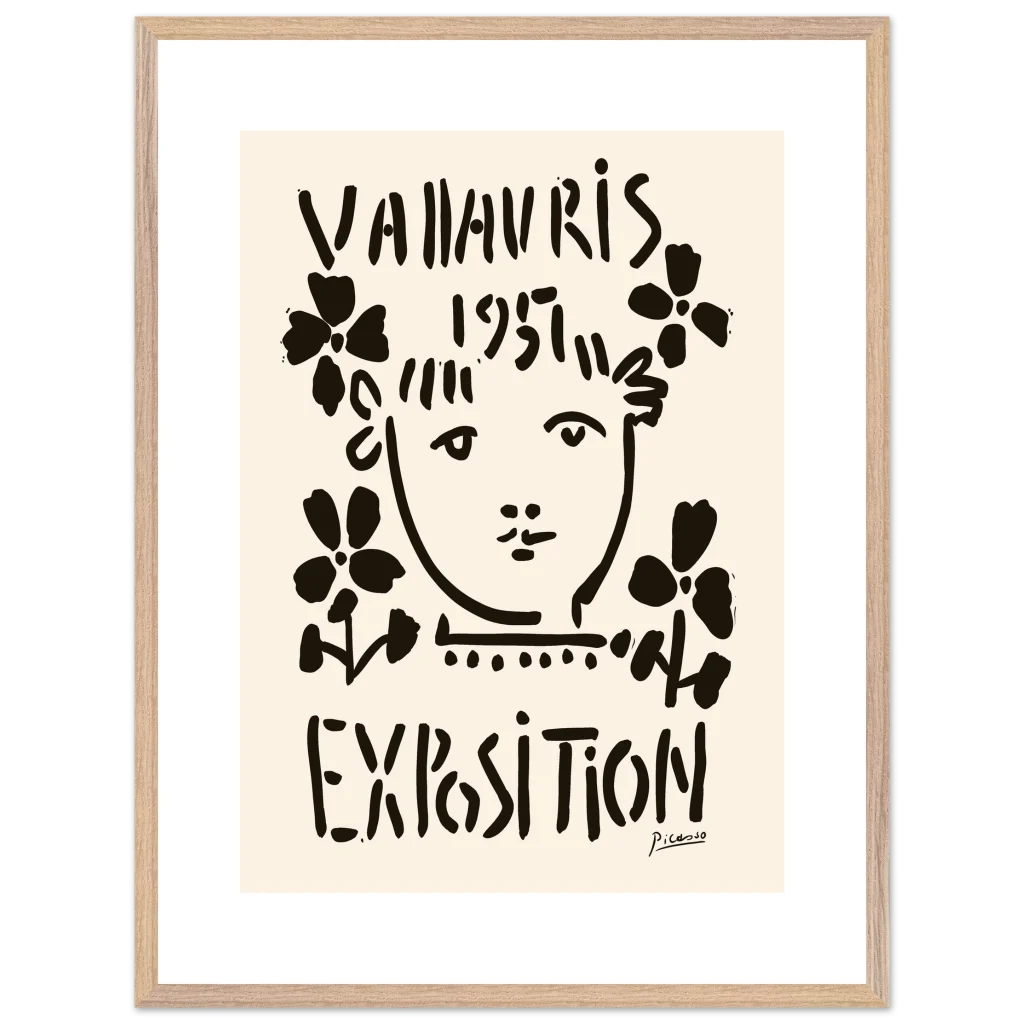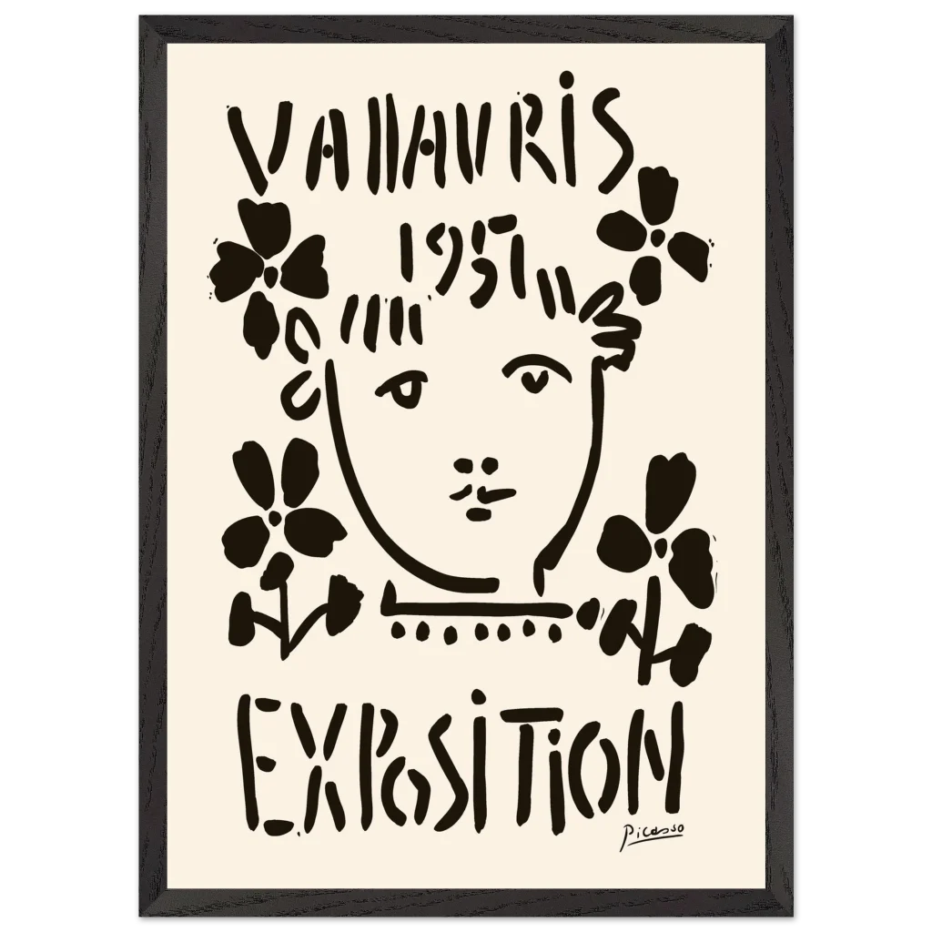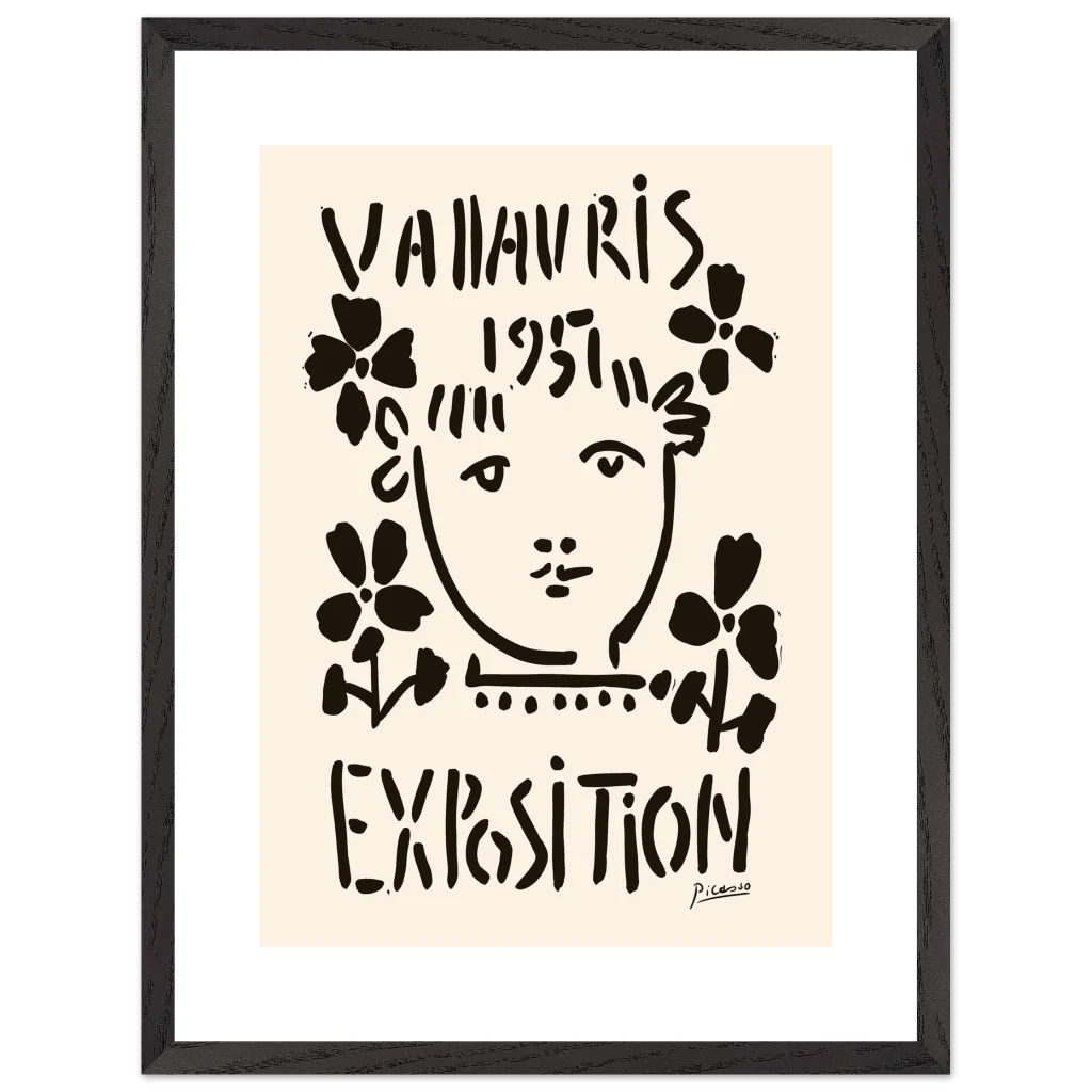 Vallauris 1957 Exposition Poster – Picasso Line Art Wall Art – Premium Wooden Framed Print with Matte Paper