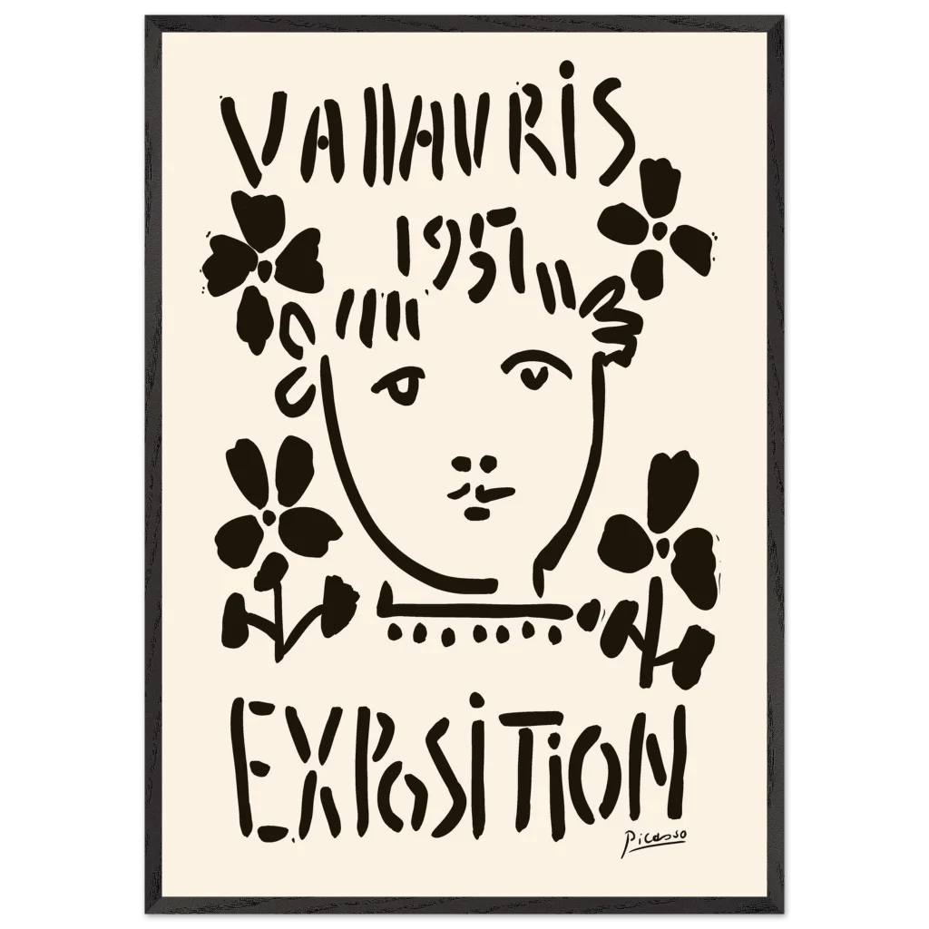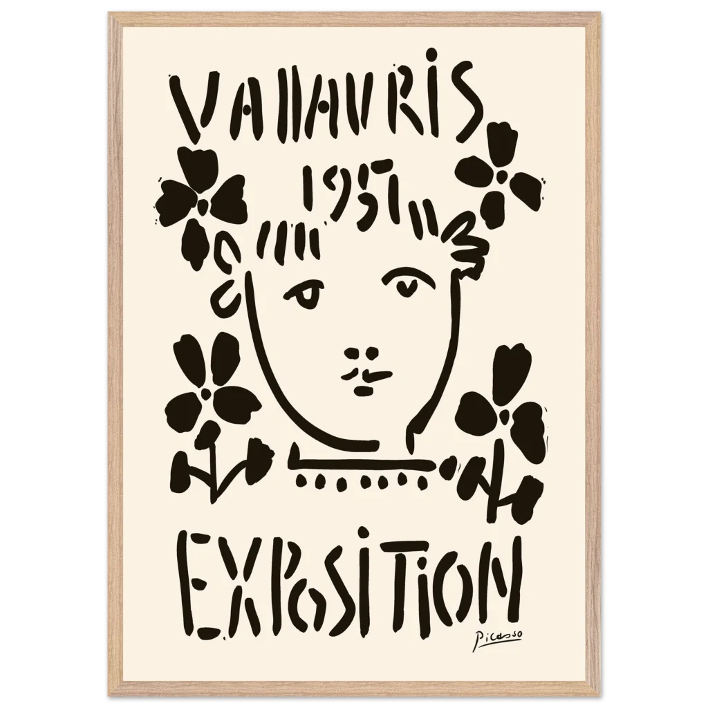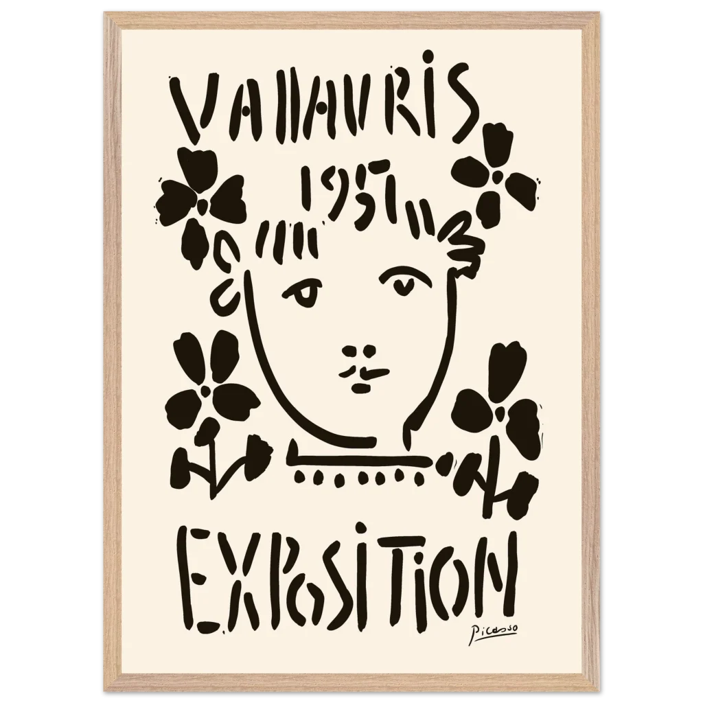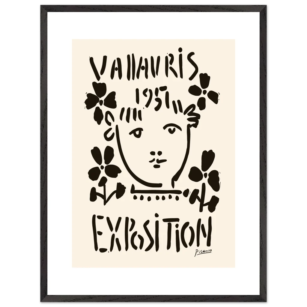 Vallauris 1957 Exposition Poster – Picasso Line Art Wall Art – Premium Wooden Framed Print with Matte Paper