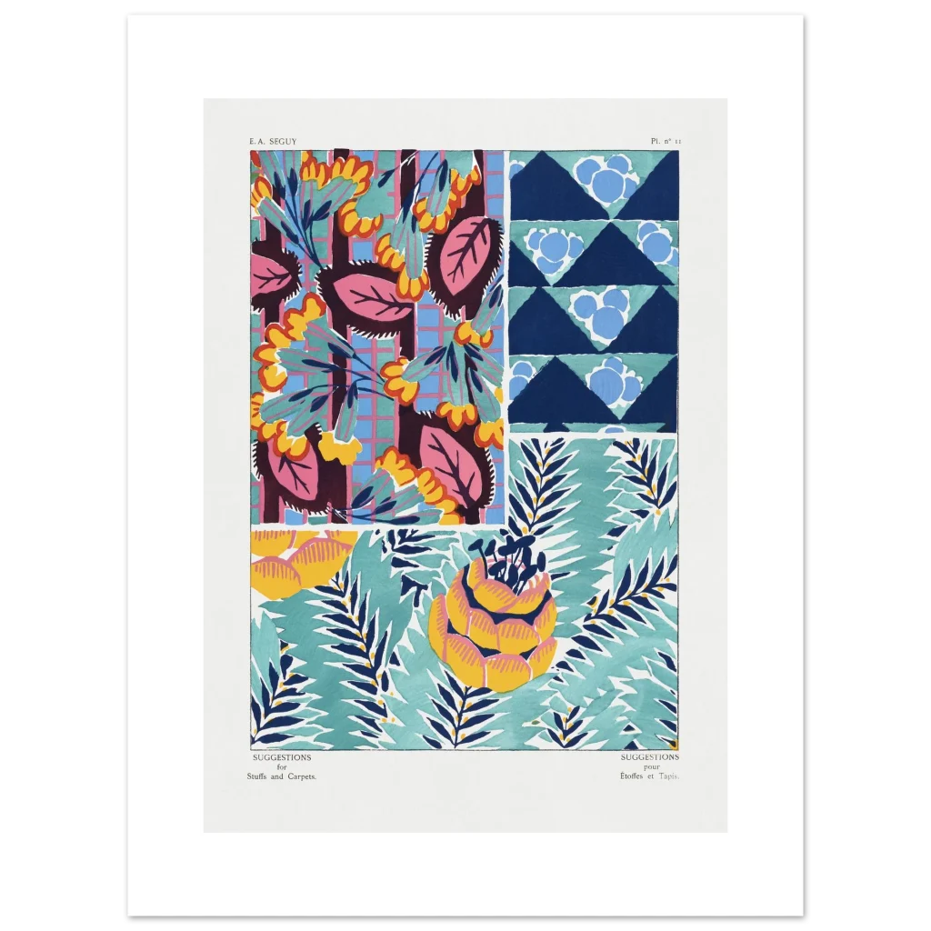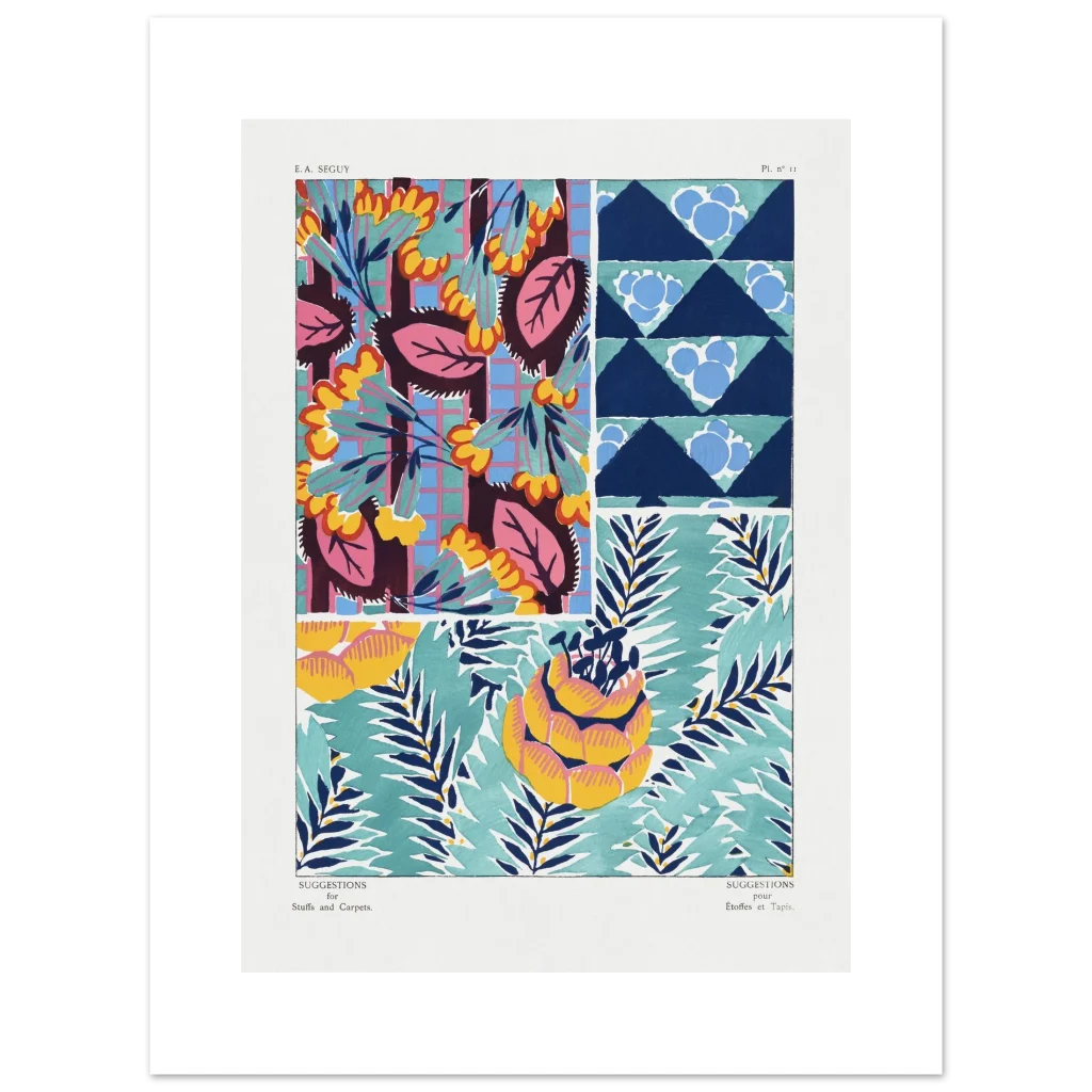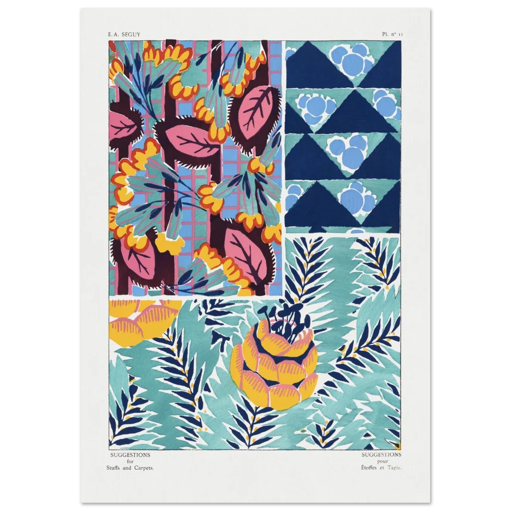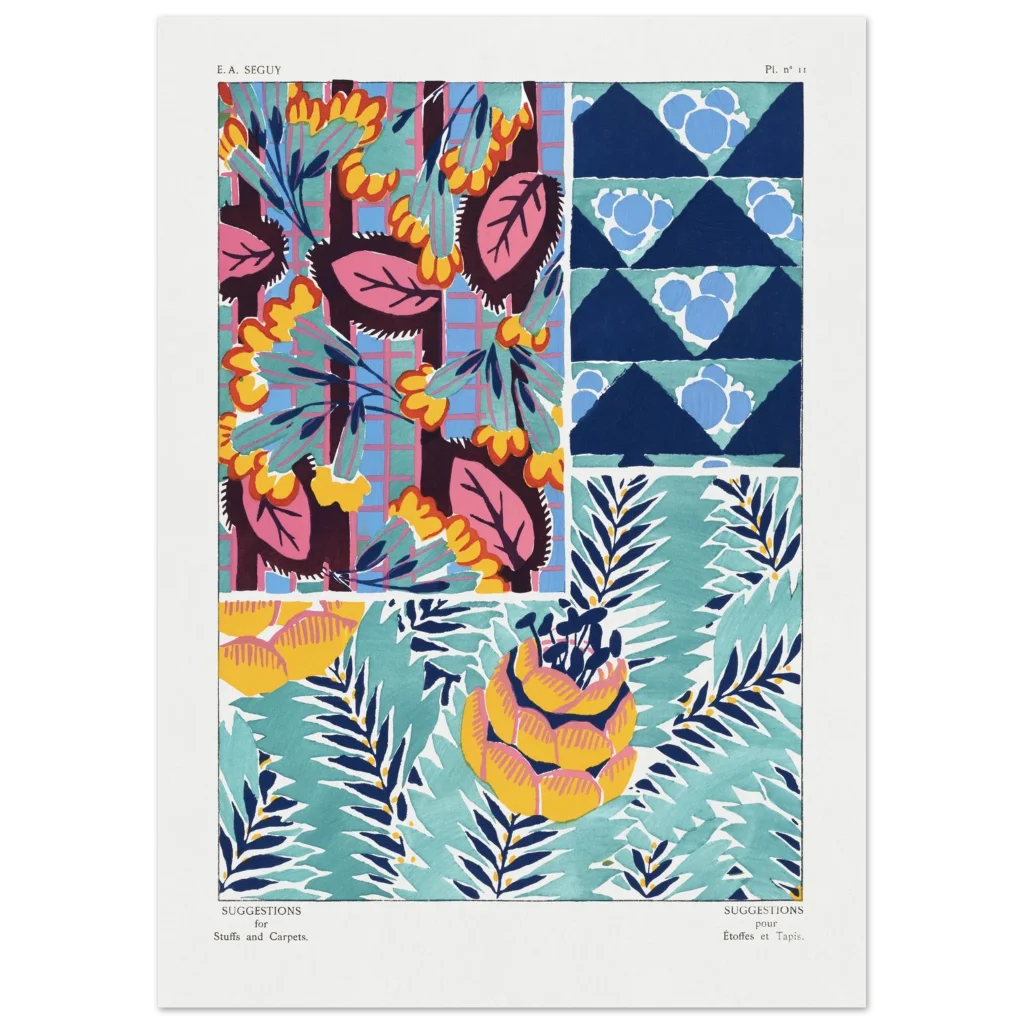 Infuse your space with a burst of color and abstract charm with our vibrant botanical patterns poster. Inspired by vintage textile designs, this piece showcases a lively palette of teal, navy, hot pink, and sunny yellow, bringing an artistic and energetic touch to any room. It’s an instant mood-lifter, perfect for those who appreciate bold aesthetics and a touch of retro flair.