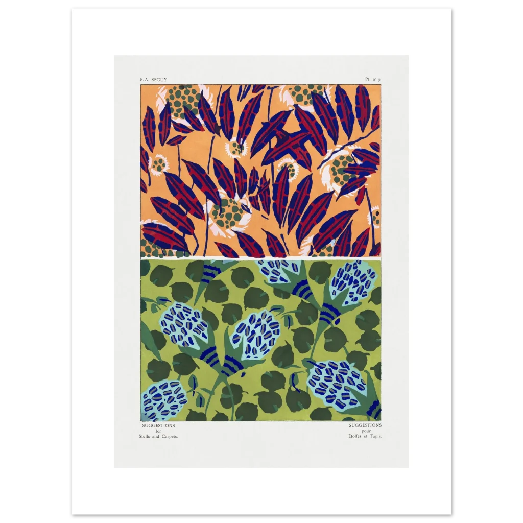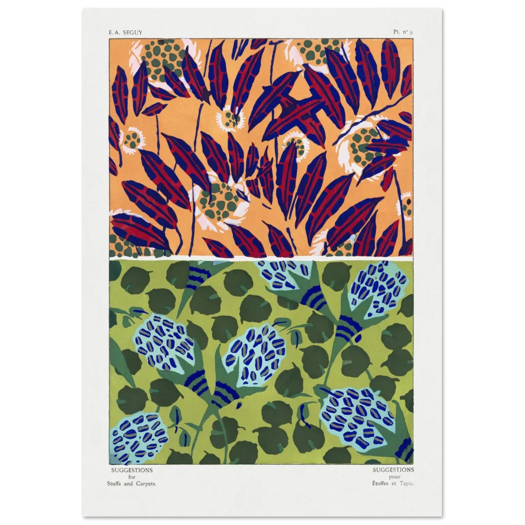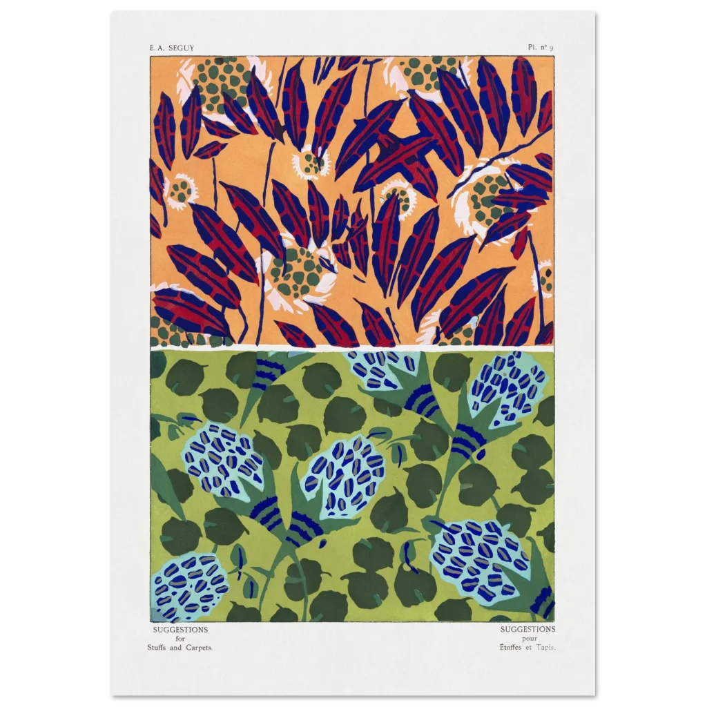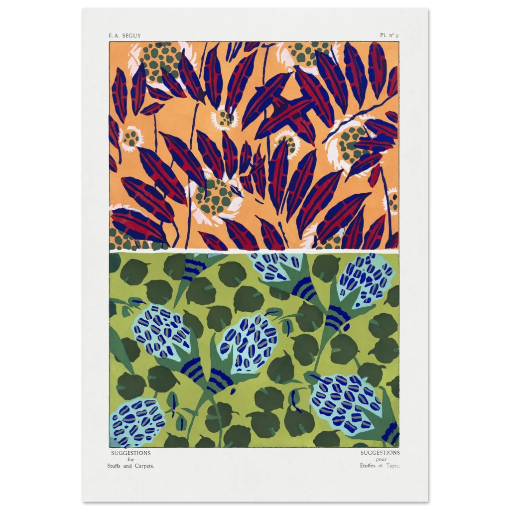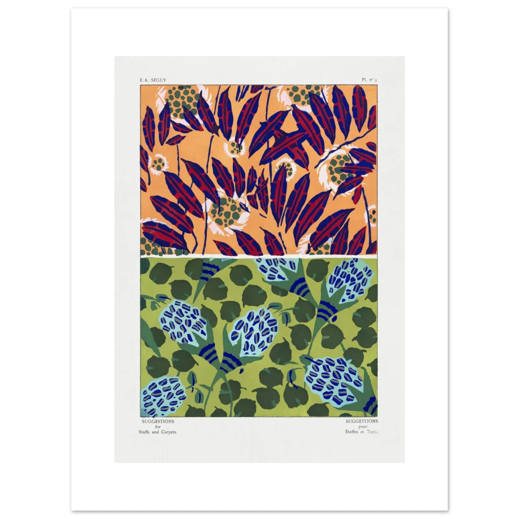 Infuse your space with the dynamic energy of abstract botanical artistry. This premium matte poster showcases two distinct, captivating patterns—one bursting with fiery oranges, deep blues, and rich reds, and the other a serene dance of greens and sky blues. Each design, reminiscent of vintage textile suggestions, offers a unique blend of modern sensibility and classic charm, perfect for adding a sophisticated yet playful touch to any room.