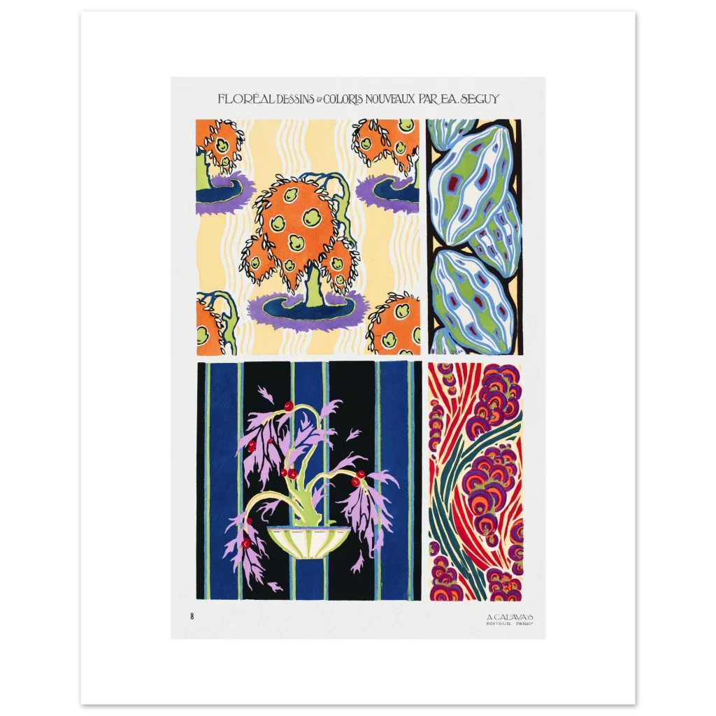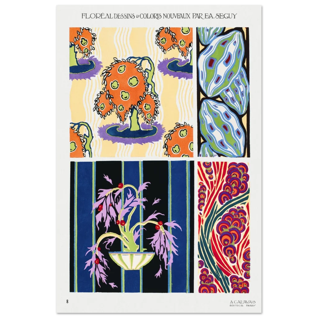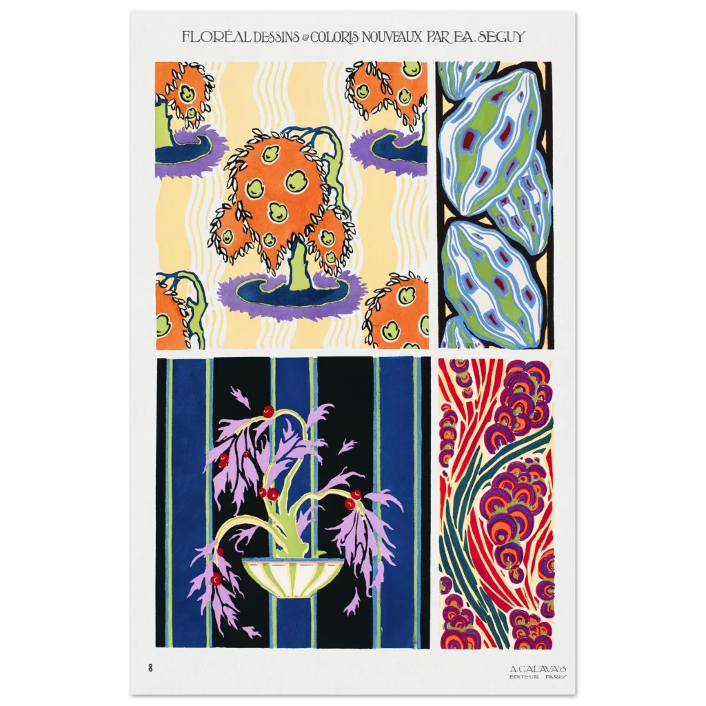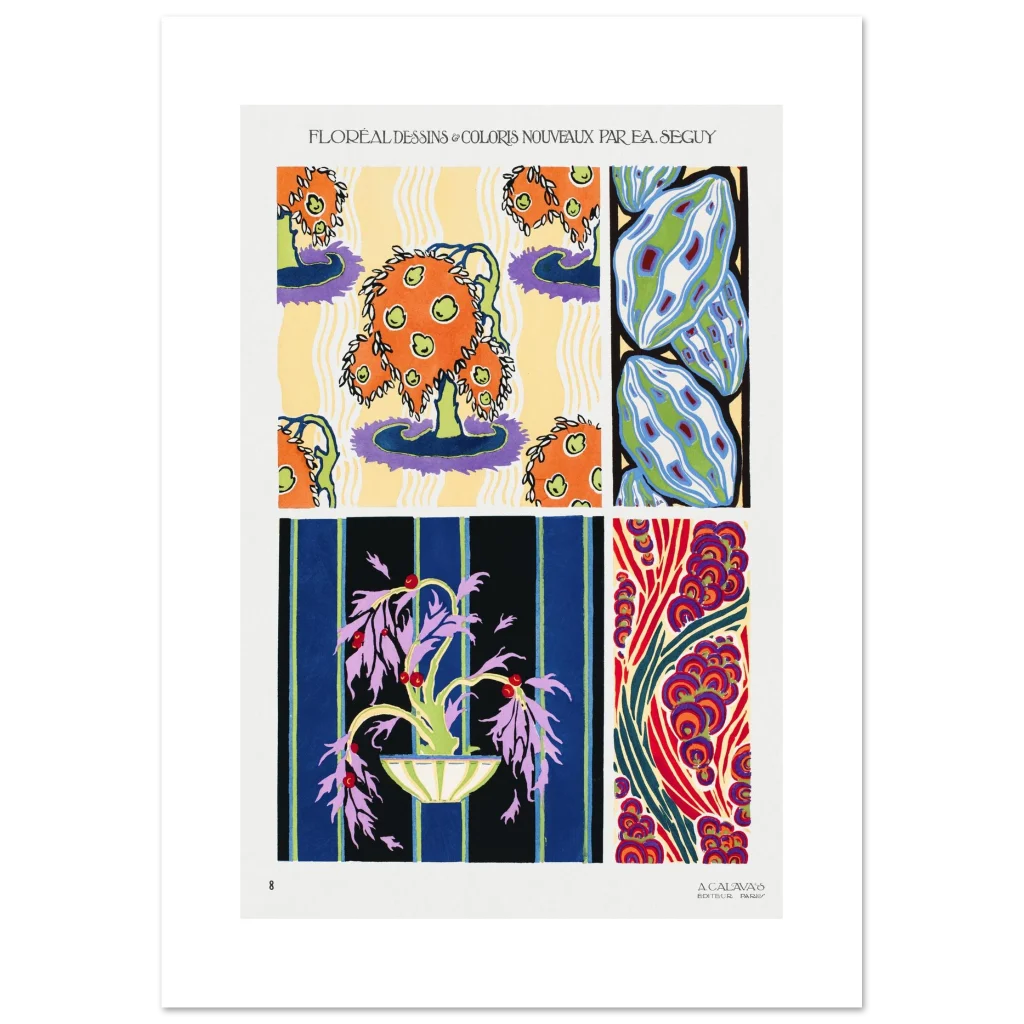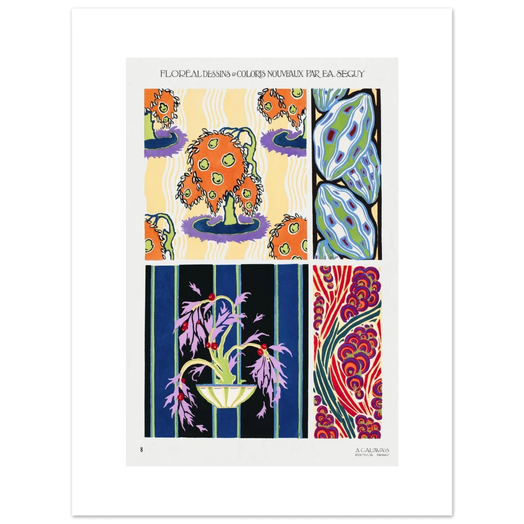 Bring a burst of timeless elegance and exuberant color into your space with this stunning Art Deco-inspired poster. Featuring rich, intricate floral and organic designs, this piece captures the sophisticated yet playful spirit of the era. The vivid palette and dynamic patterns make it a captivating focal point for any room, inviting a sense of artistic flair and historical charm.