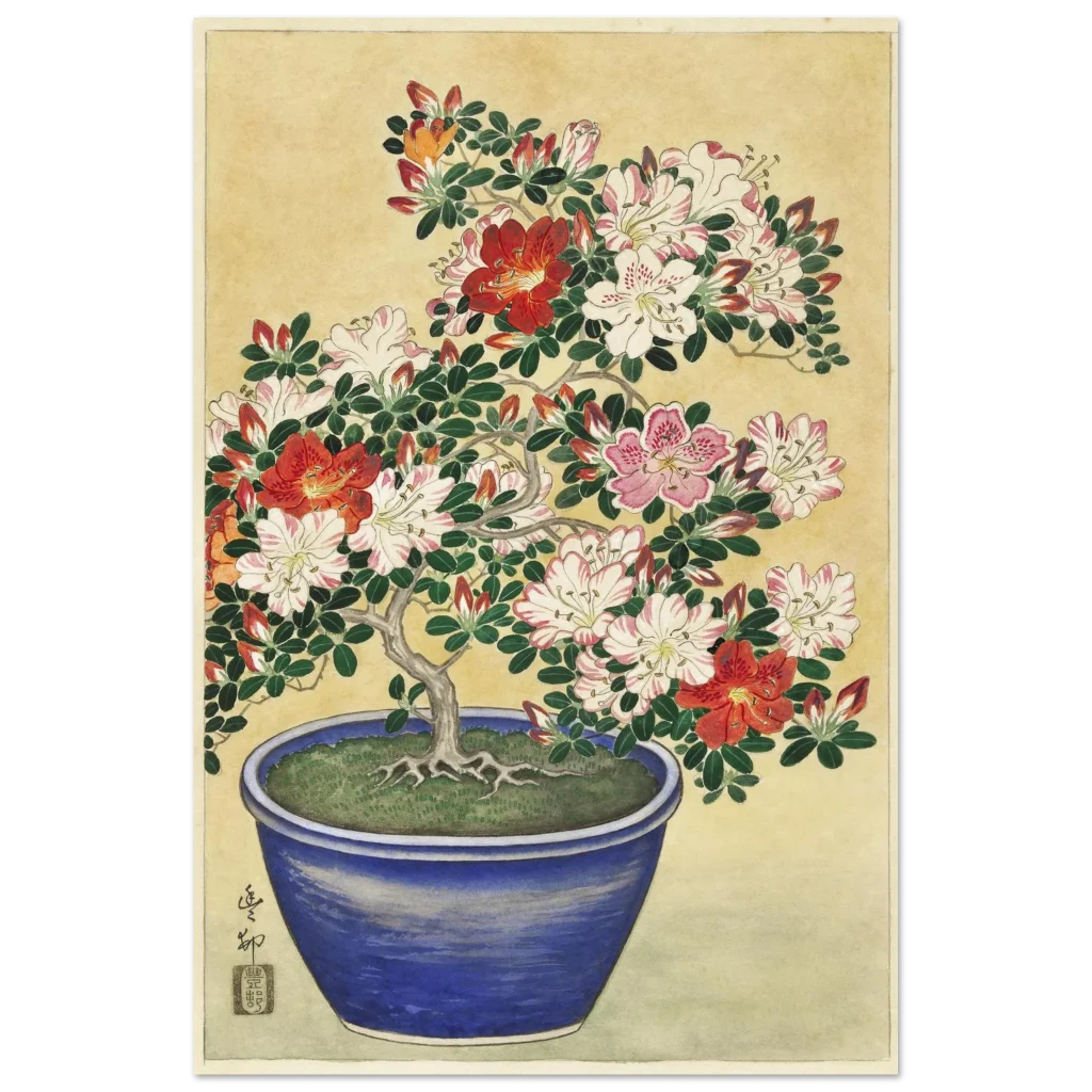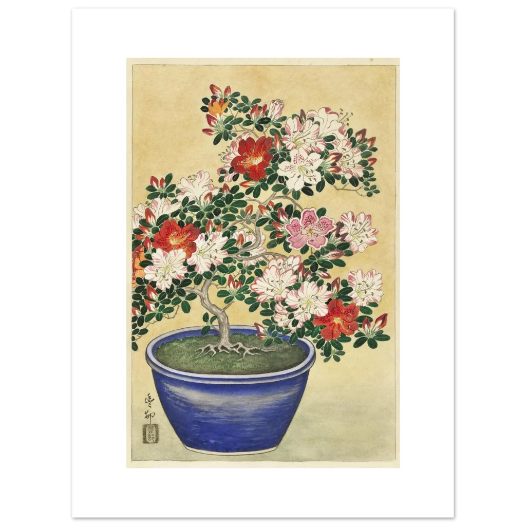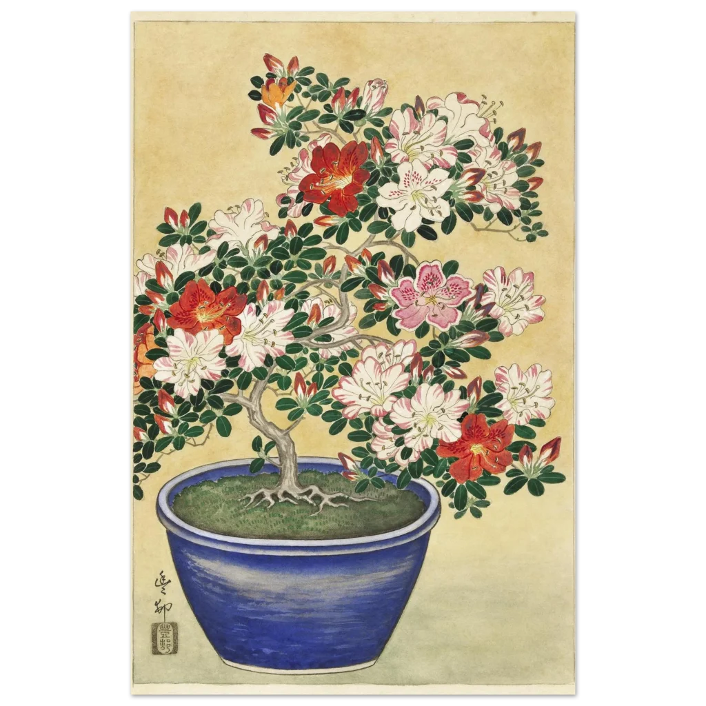 Vibrant Azalea Bonsai Bloom – Premium Matte Paper Poster with Japanese Artistry