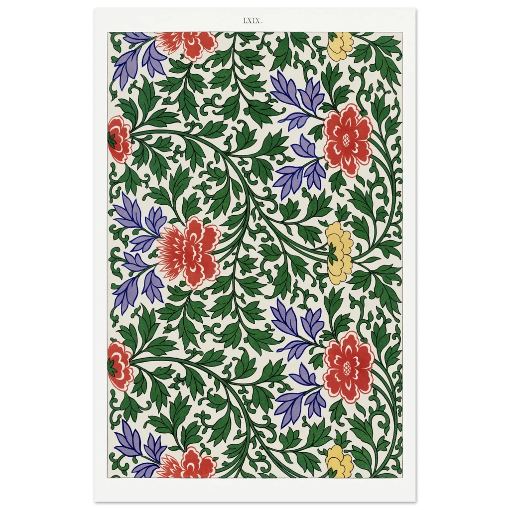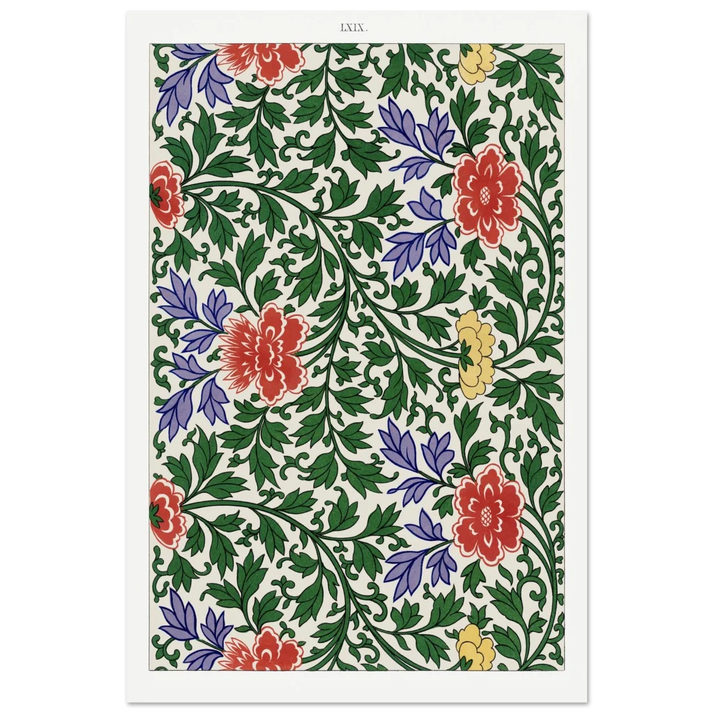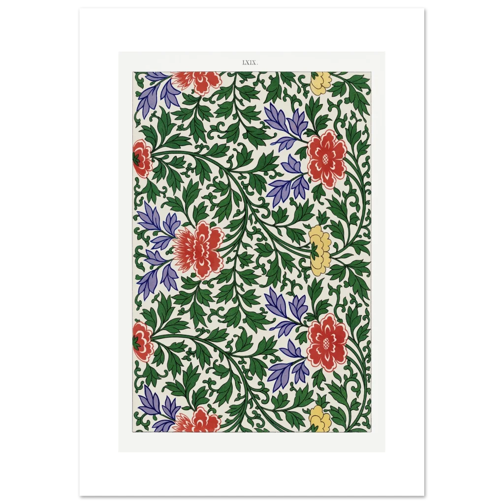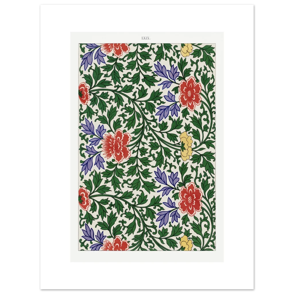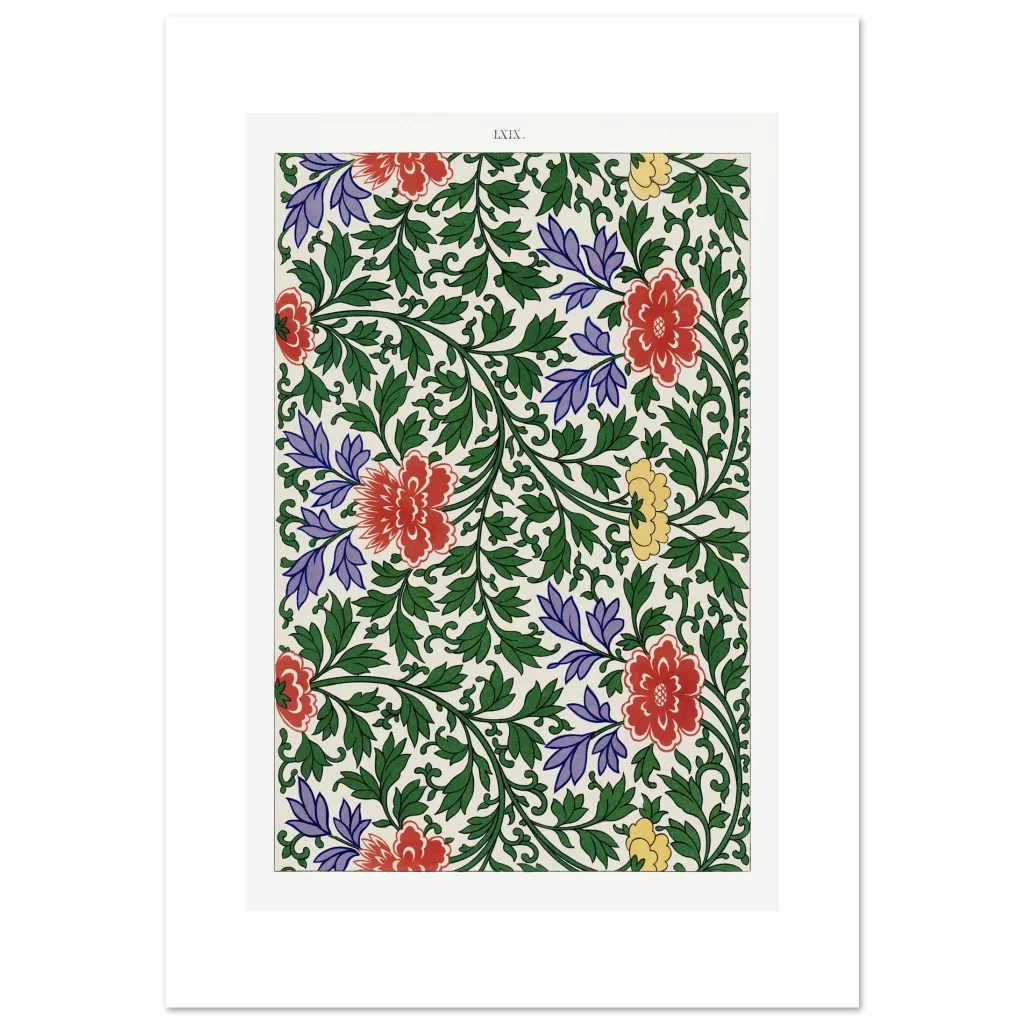 Bring timeless elegance and vibrant charm into your home with our Chinoiserie Floral Bloom poster. This exquisite piece captures the lush beauty of traditional Eastern botanical art, featuring a captivating tapestry of red, purple, and yellow blossoms intertwined with verdant green foliage. The rich color palette and intricate design evoke a sense of heritage and refined taste, perfect for adding a sophisticated focal point to any room.