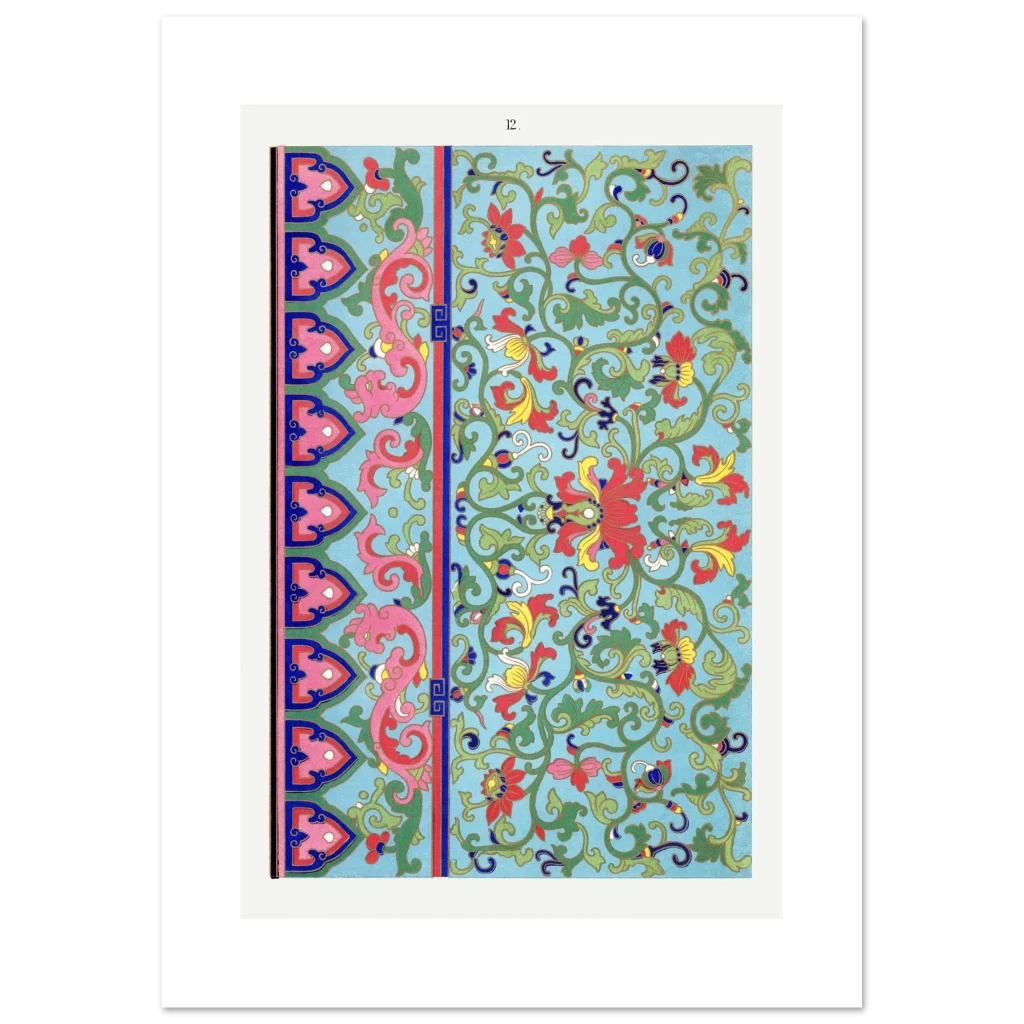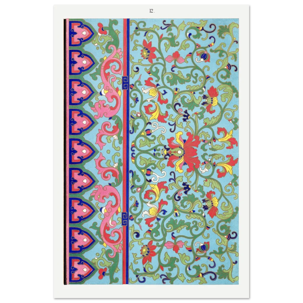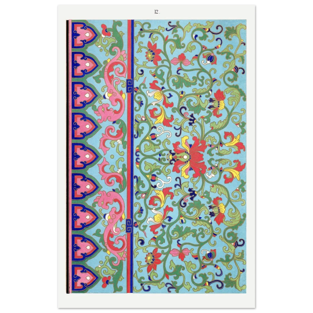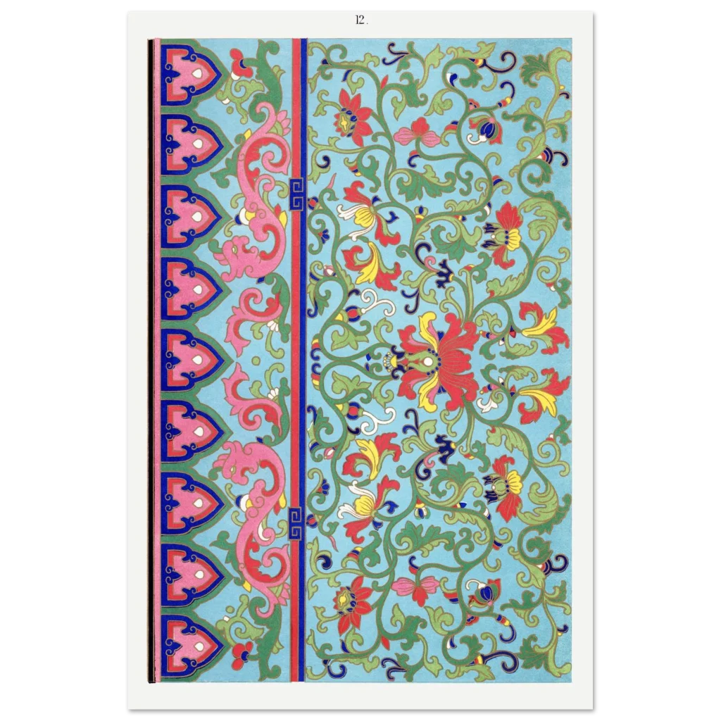 Vibrant East Asian Floral & Scrollwork Art Print – Premium Matte Poster in Multiple Sizes