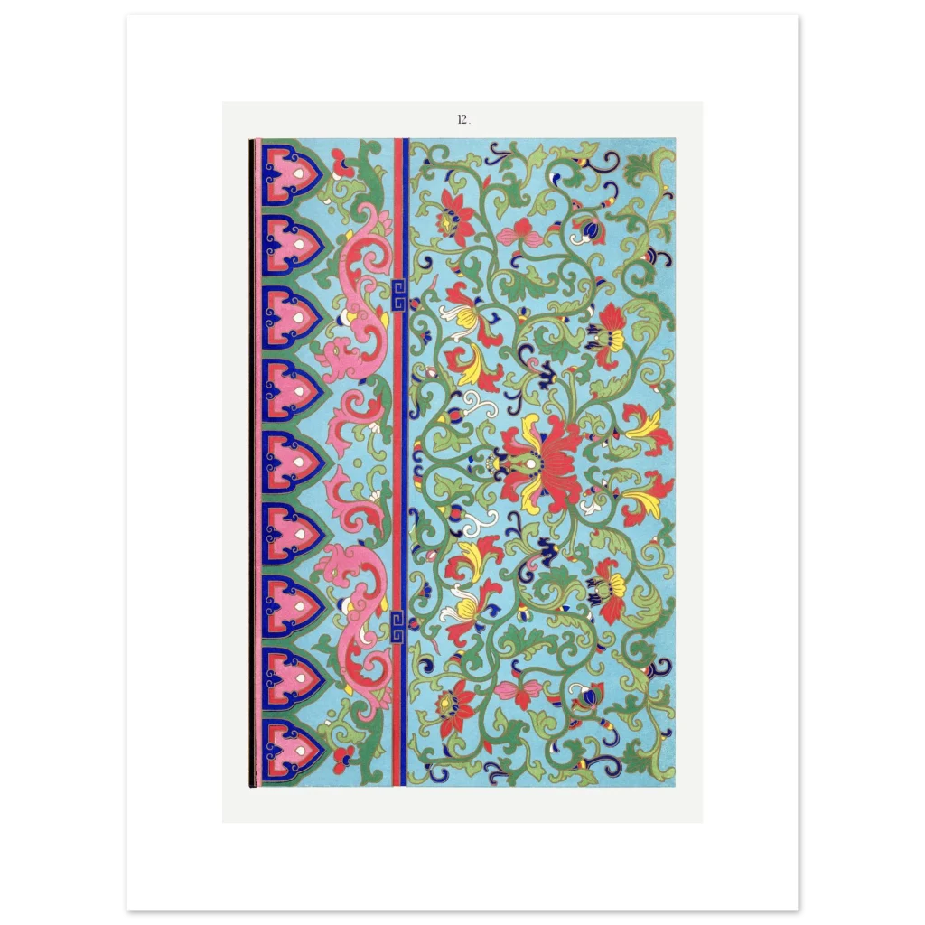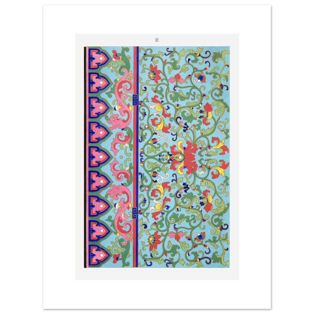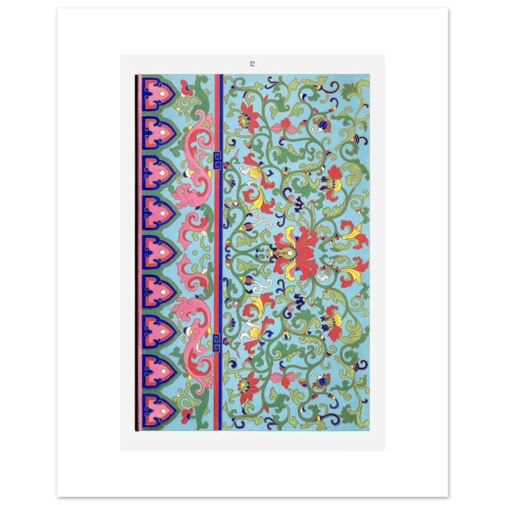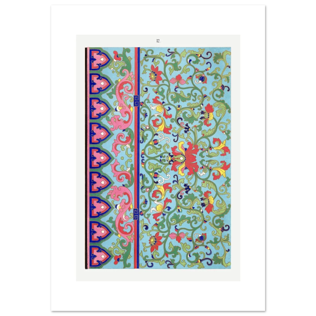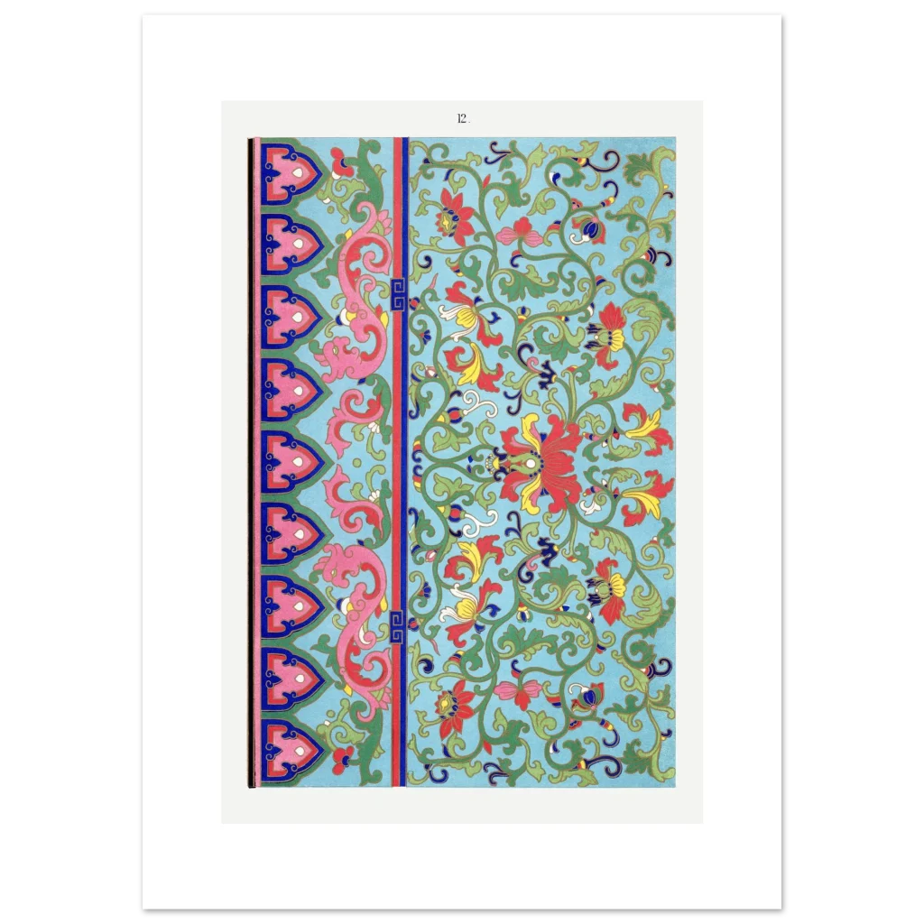 Vibrant East Asian Floral & Scrollwork Art Print – Premium Matte Poster in Multiple Sizes