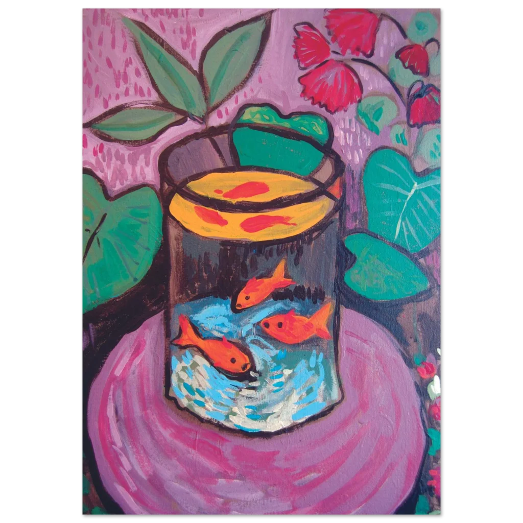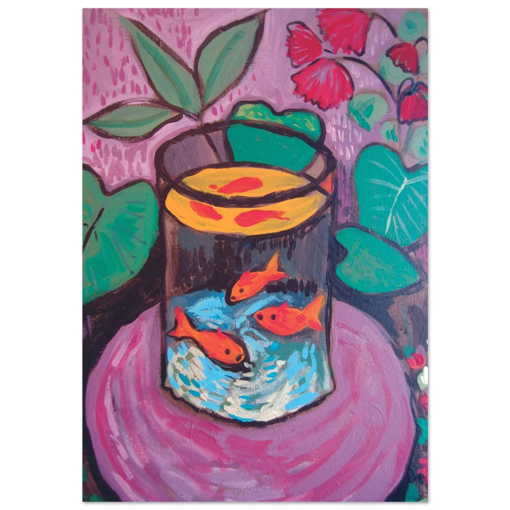 Vibrant Goldfish & Foliage Premium Matte Poster – Eclectic Art in Your Choice of Size