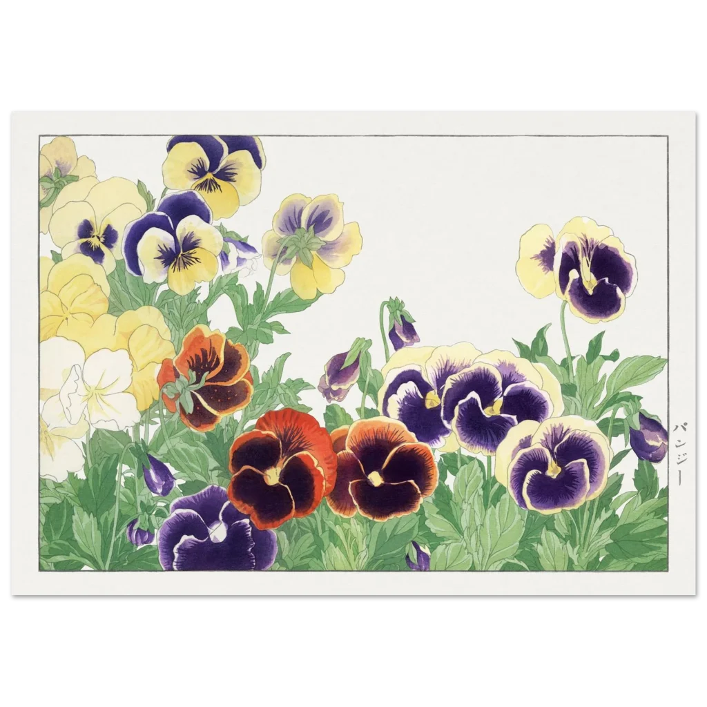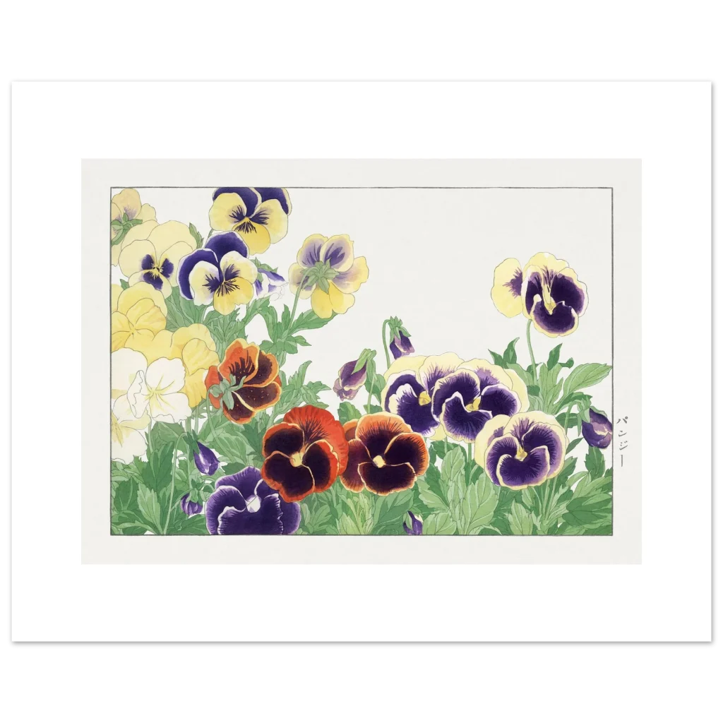 Vibrant Japanese Pansy Blossom Art Print – Premium Matte Paper Poster in Multiple Sizes