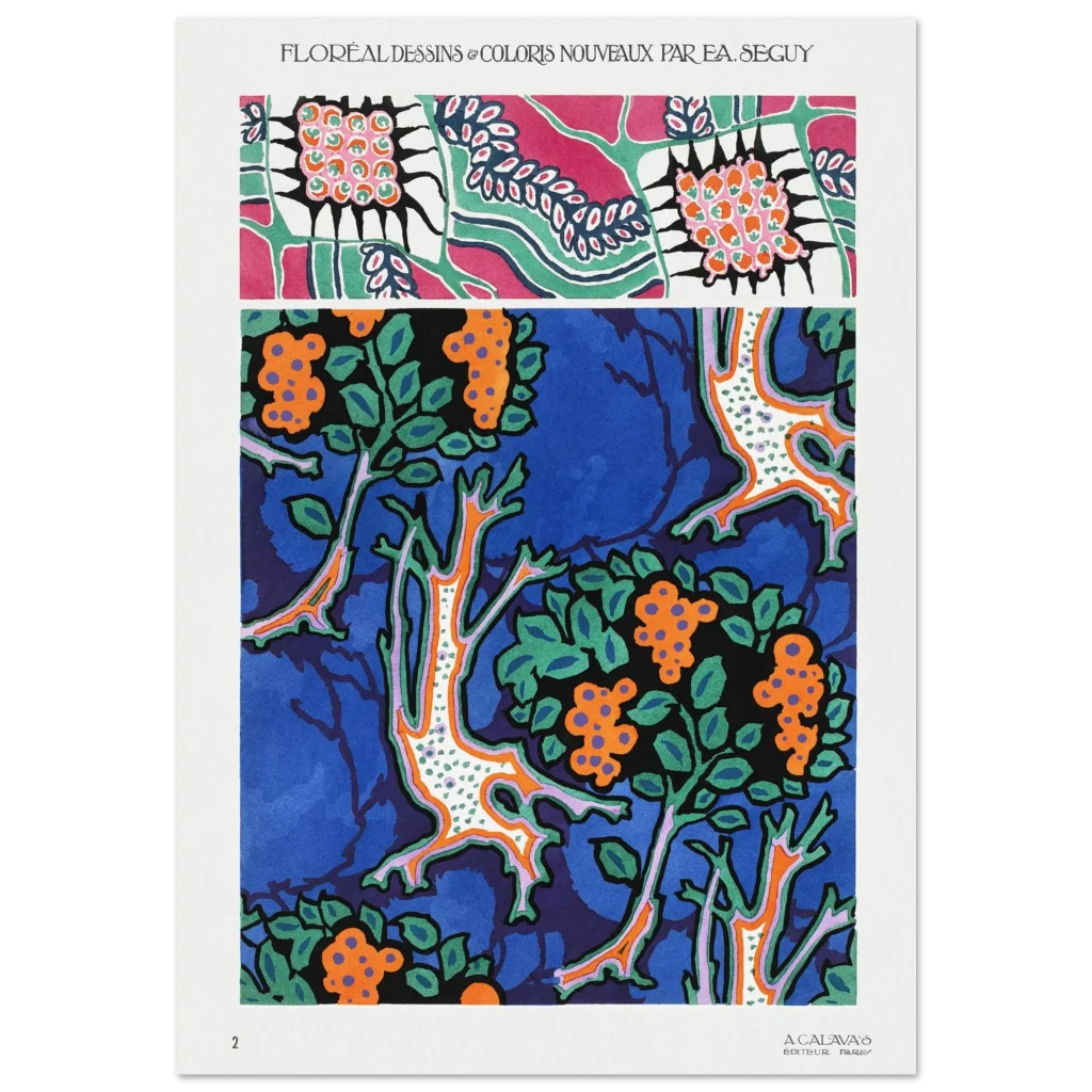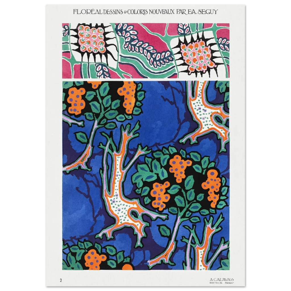 Bring a touch of whimsical fantasy to your space with our Vibrant Nouveau Forest poster. Inspired by the captivating Art Nouveau era and a bold, illustrative style, this piece features playful trees and berry-like forms against a deep, enchanting blue background. The vivid orange, fuchsia, and emerald green hues create a striking visual that transforms any room into a lively, artful sanctuary. This poster is perfect for those who appreciate unique, colorful botanical designs with a touch of vintage charm.