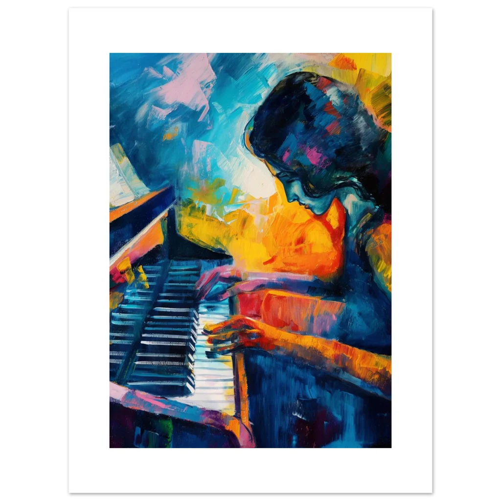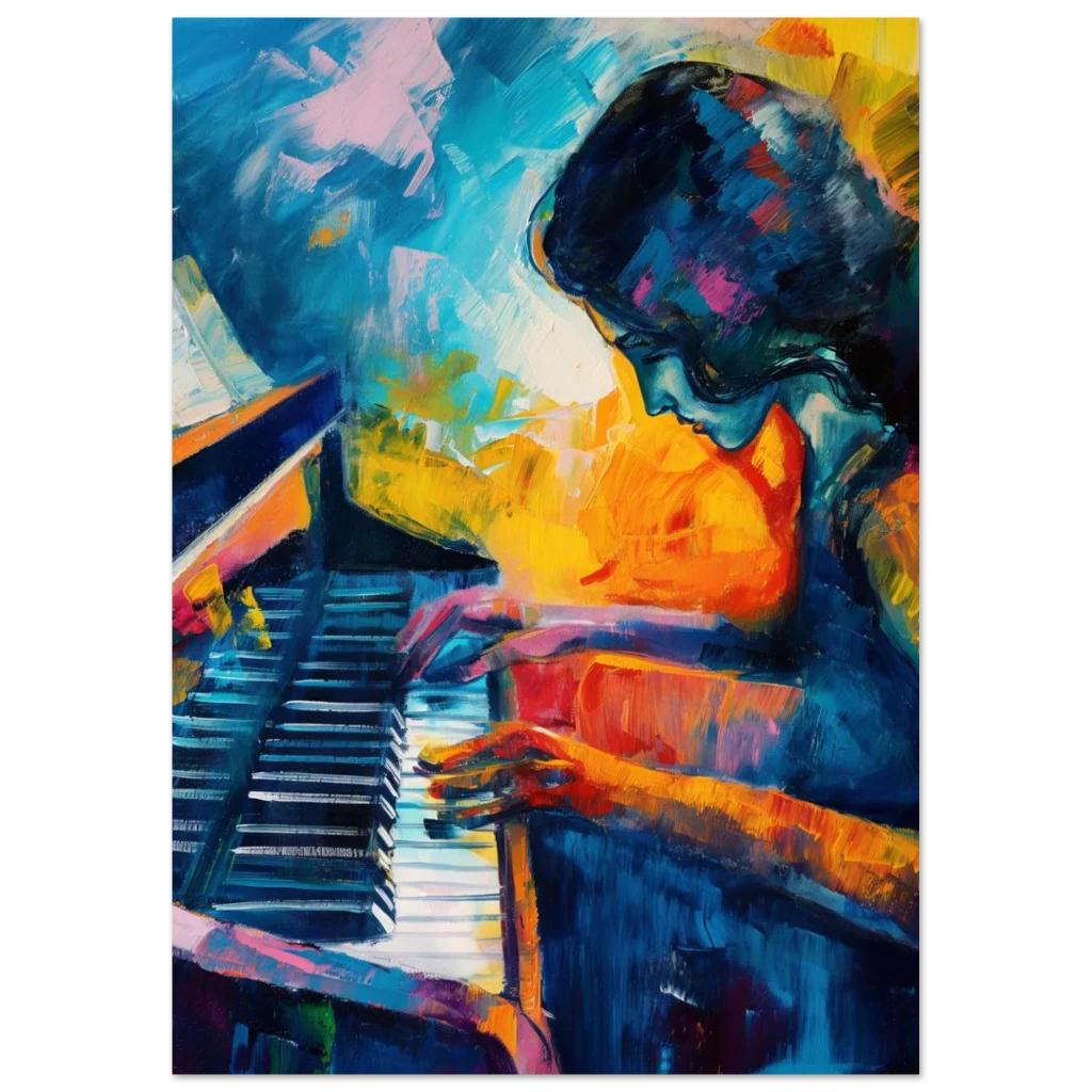 Vibrant Palette Piano Player Poster – Expressive Abstract Art Print for Modern Spaces
