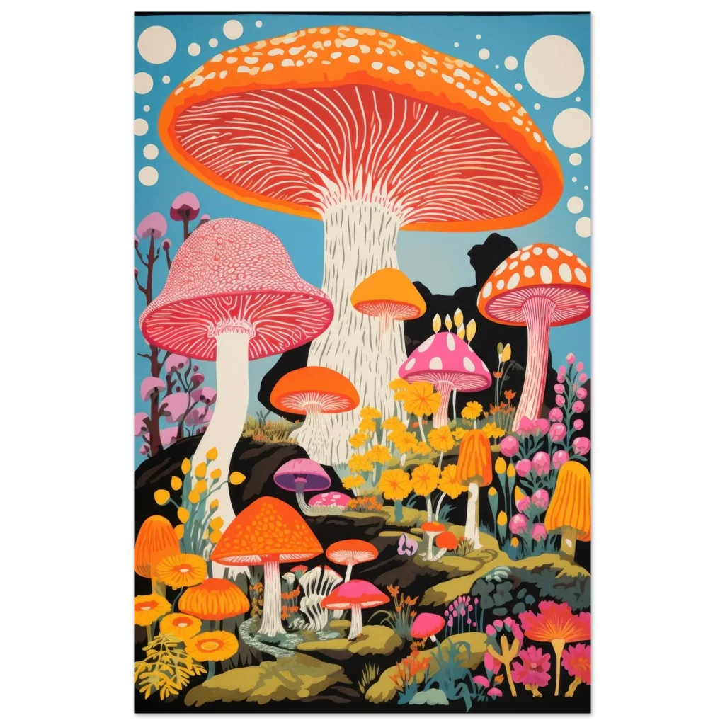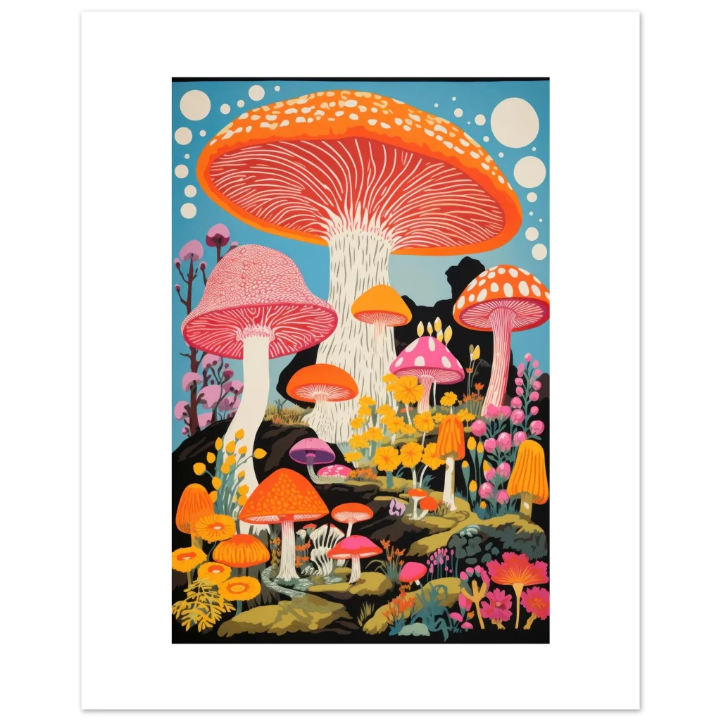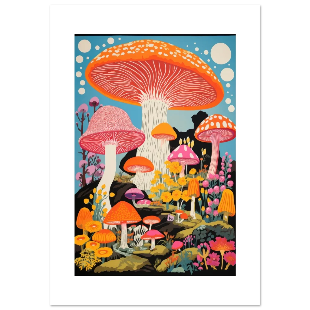 Vibrant Psychedelic Mushroom Forest Art Print – Premium Matte Paper Poster in Multiple Sizes
