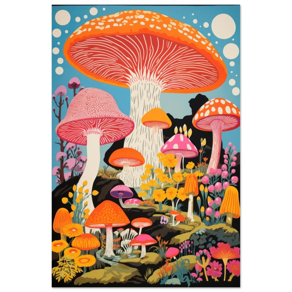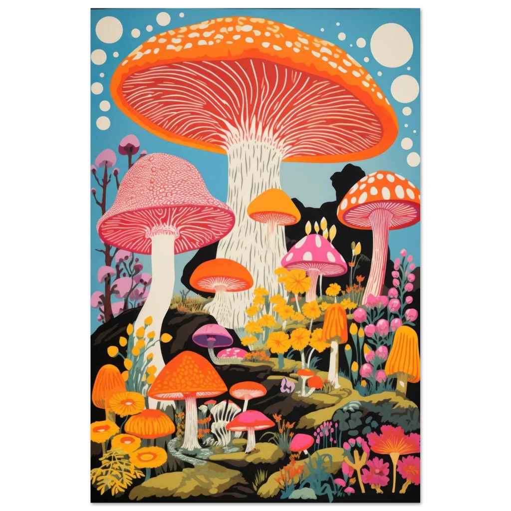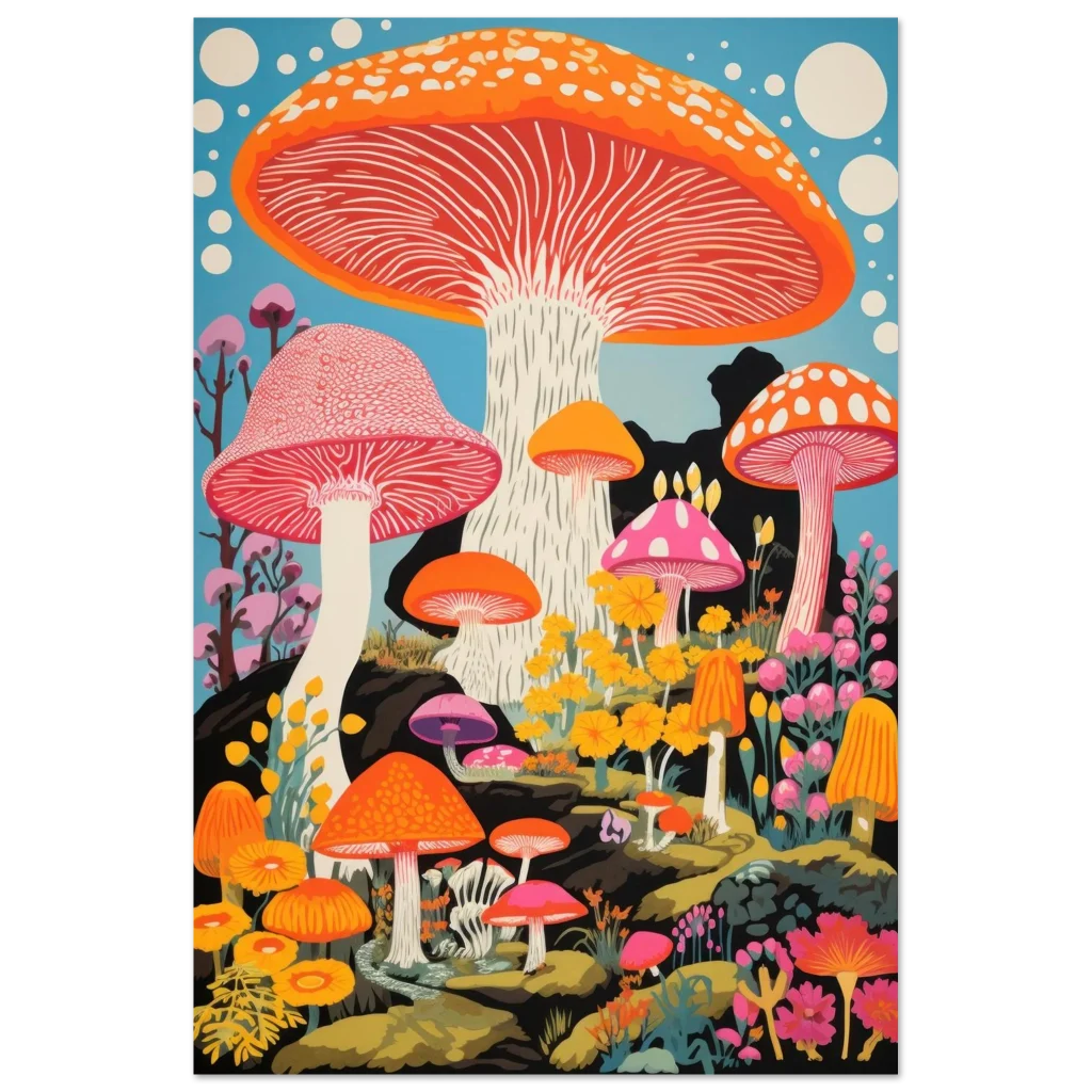 Vibrant Psychedelic Mushroom Forest Art Print – Premium Matte Paper Poster in Multiple Sizes