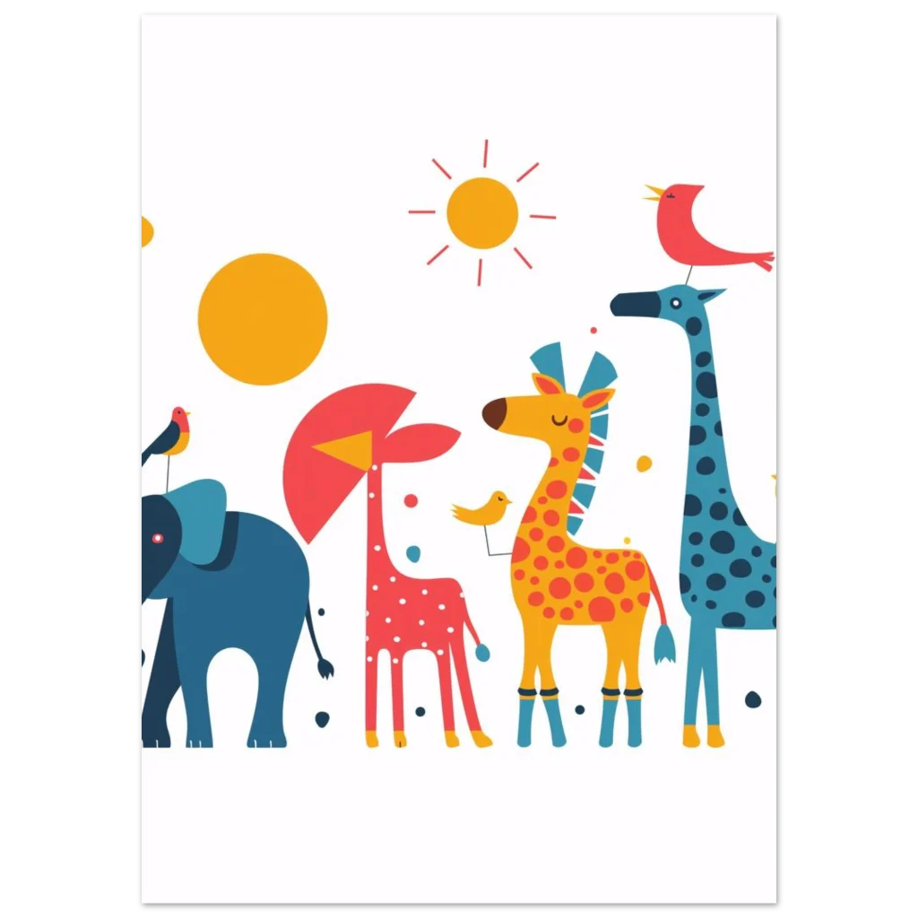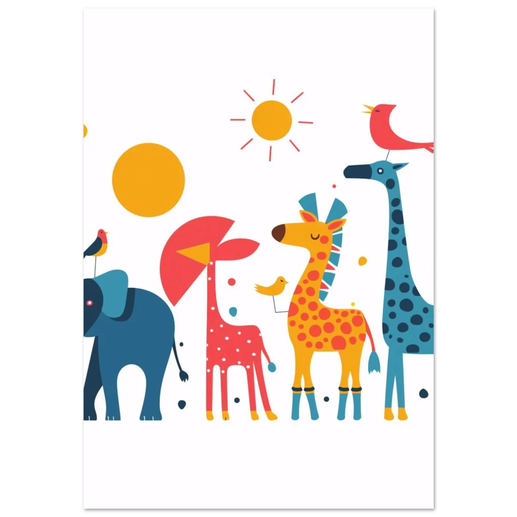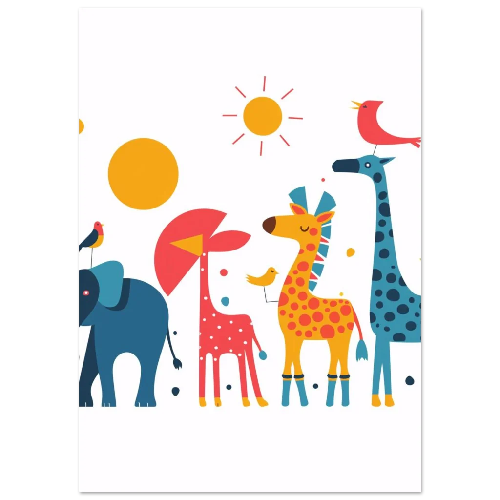 Vibrant Safari Friends Art Print – Premium Matte Paper Poster for Playful Nursery Decor