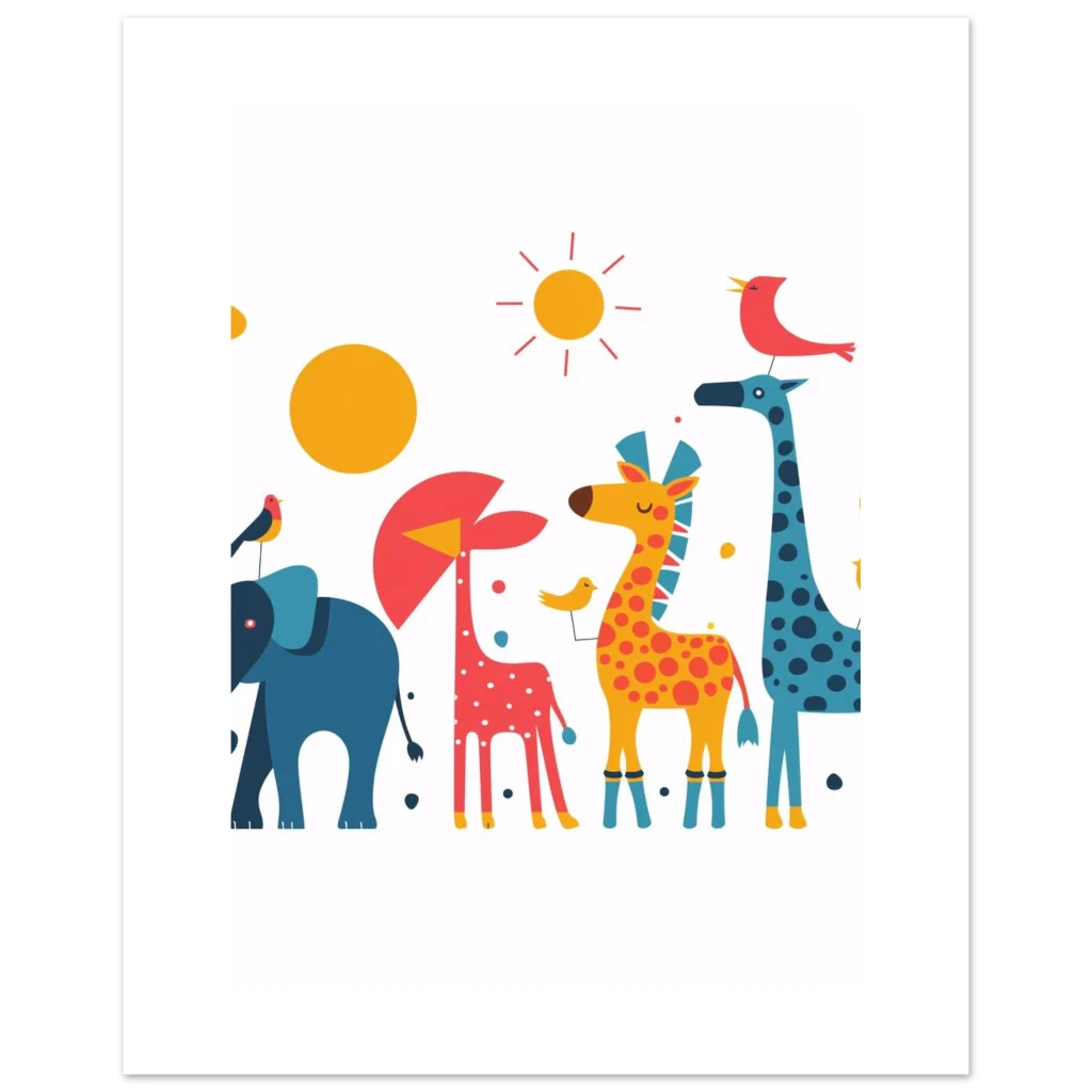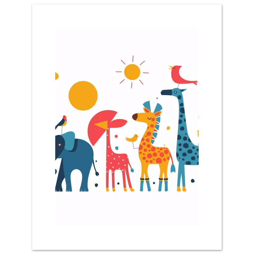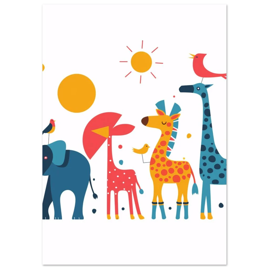Vibrant Safari Friends Art Print – Premium Matte Paper Poster for Playful Nursery Decor