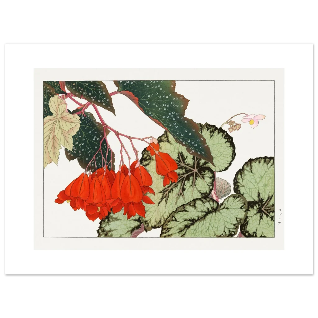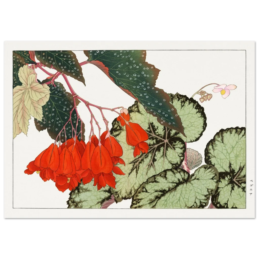 Vibrant Scarlet Begonia Botanical Print – Premium Matte Paper Poster