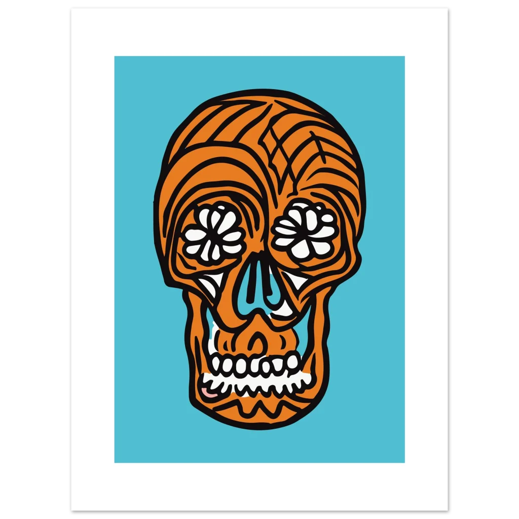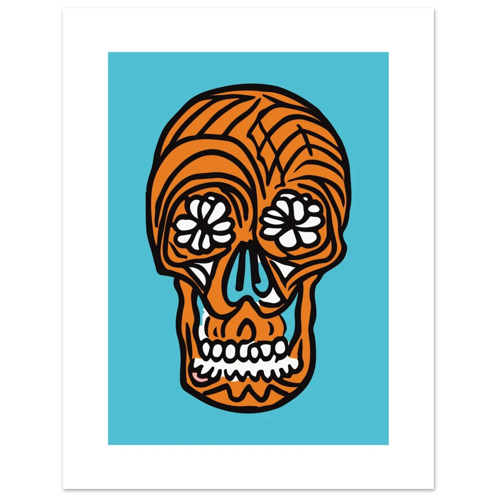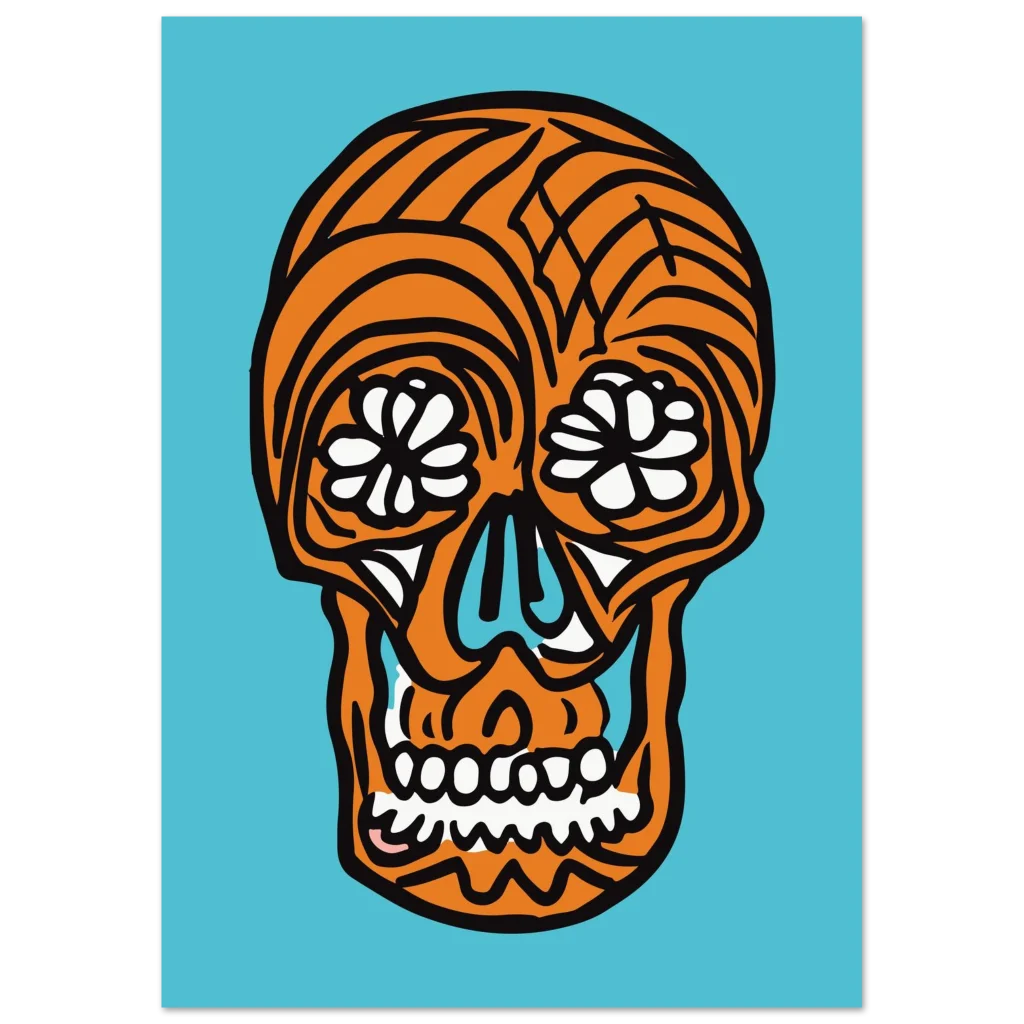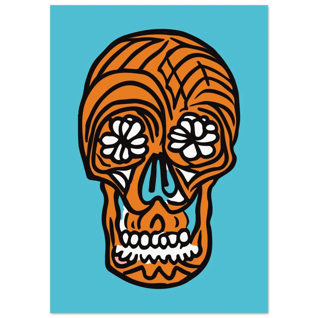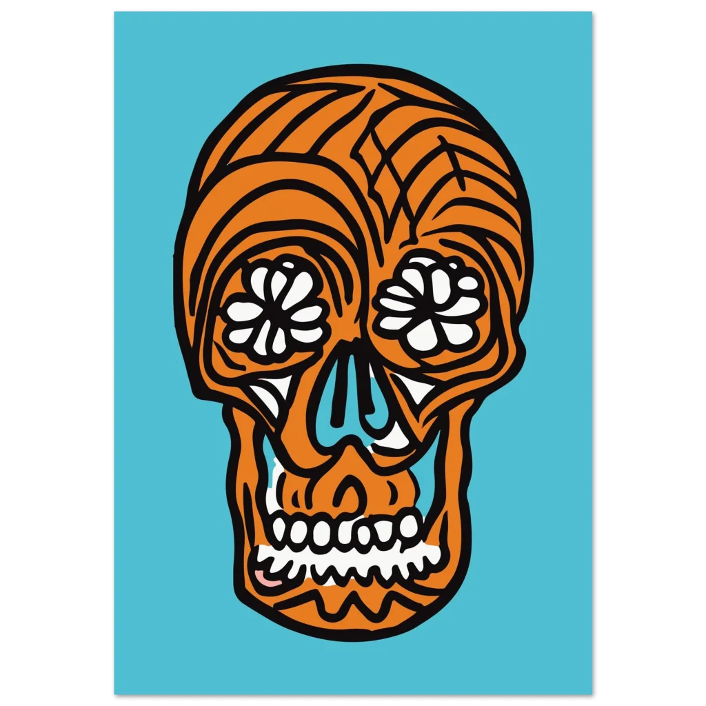 Infuse your space with bold, joyful energy with this striking pop art sugar skull poster. Featuring an iconic design with a vibrant orange and cool blue palette, this artwork brings a celebratory and unique touch to any room. Perfect for those who appreciate modern graphic design with a cultural twist, it’s sure to be a conversation starter and a captivating focal point.