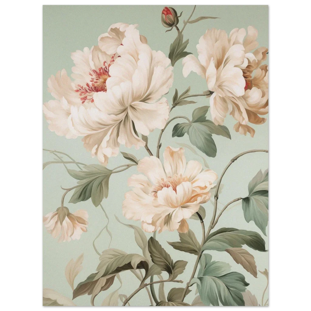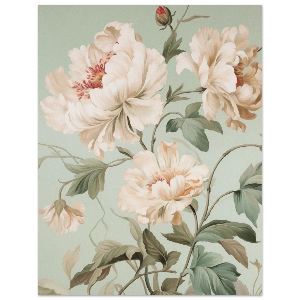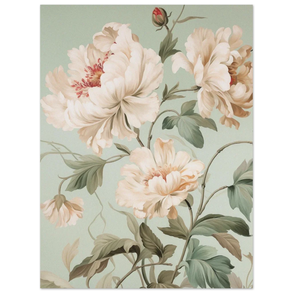 Vintage Botanical Peony Bloom Premium Matte Paper Poster – Serene Floral Art in Multiple Sizes