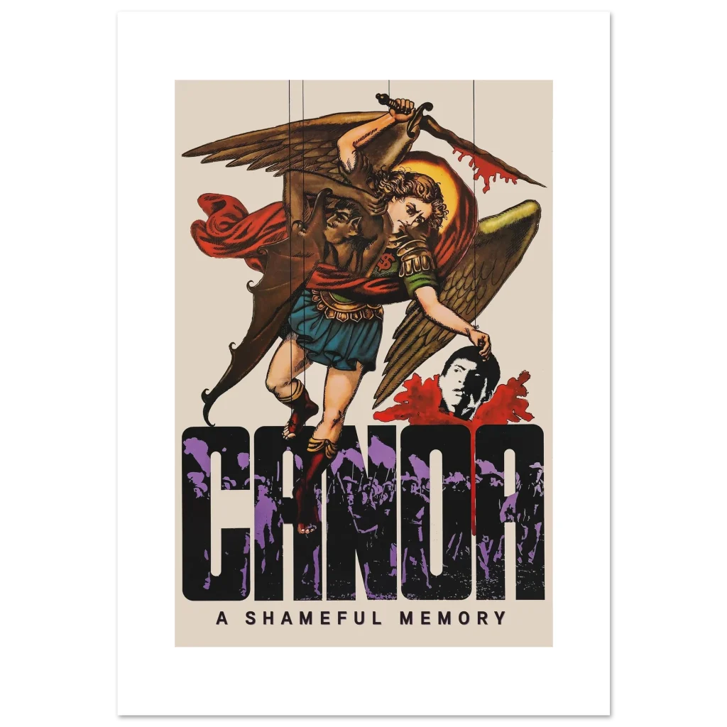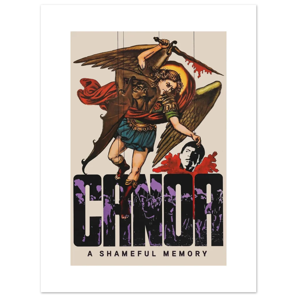 Immerse yourself in the dramatic storytelling of classic cinema with our “Cinco: A Shameful Memory” movie poster. This striking artwork, with its bold imagery and rich, vintage color palette of deep reds, browns, and contrasting blues and purples, captures a powerful narrative moment. Perfect for film aficionados and those who appreciate art with a compelling story, this poster transforms any space into a gallery of cinematic history.