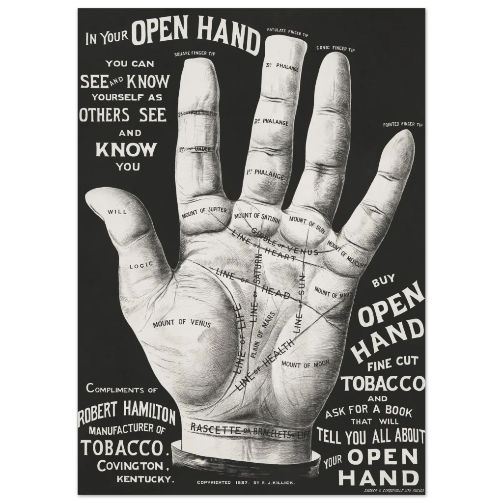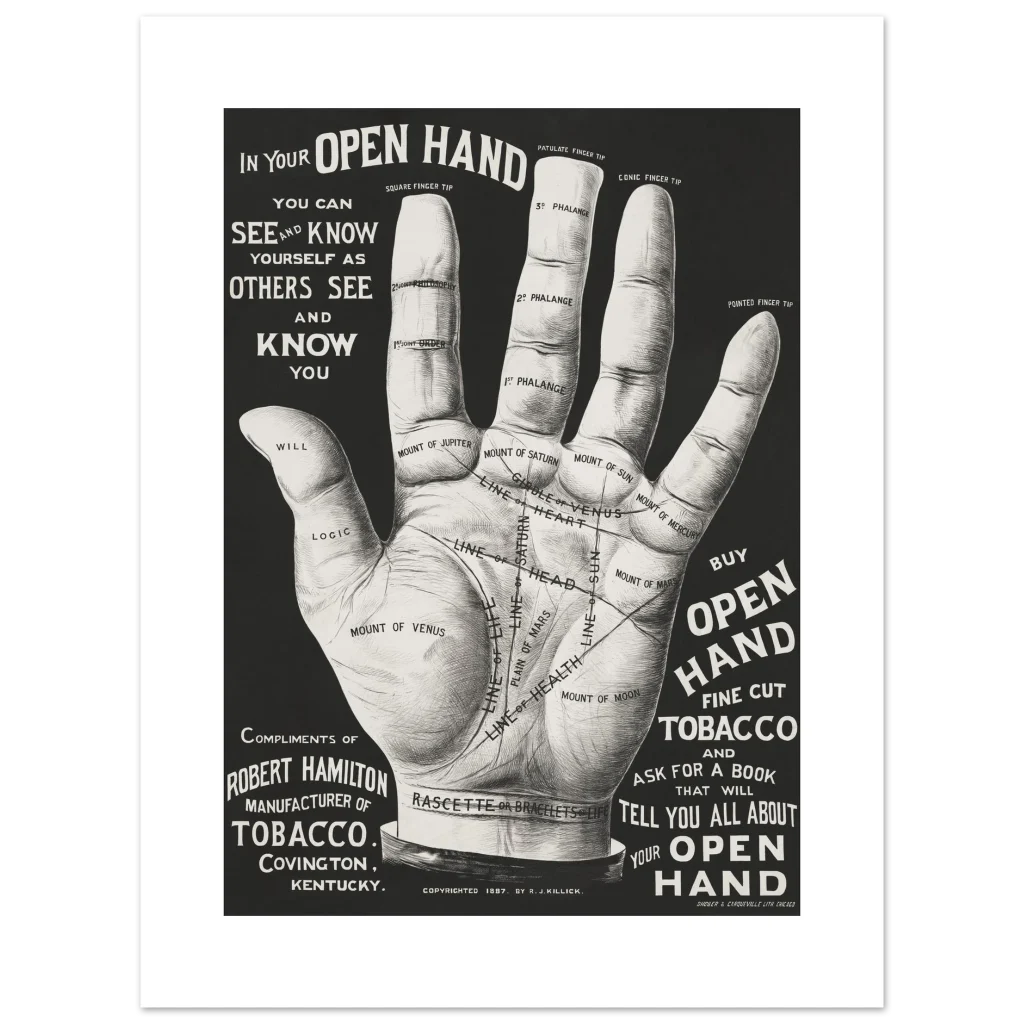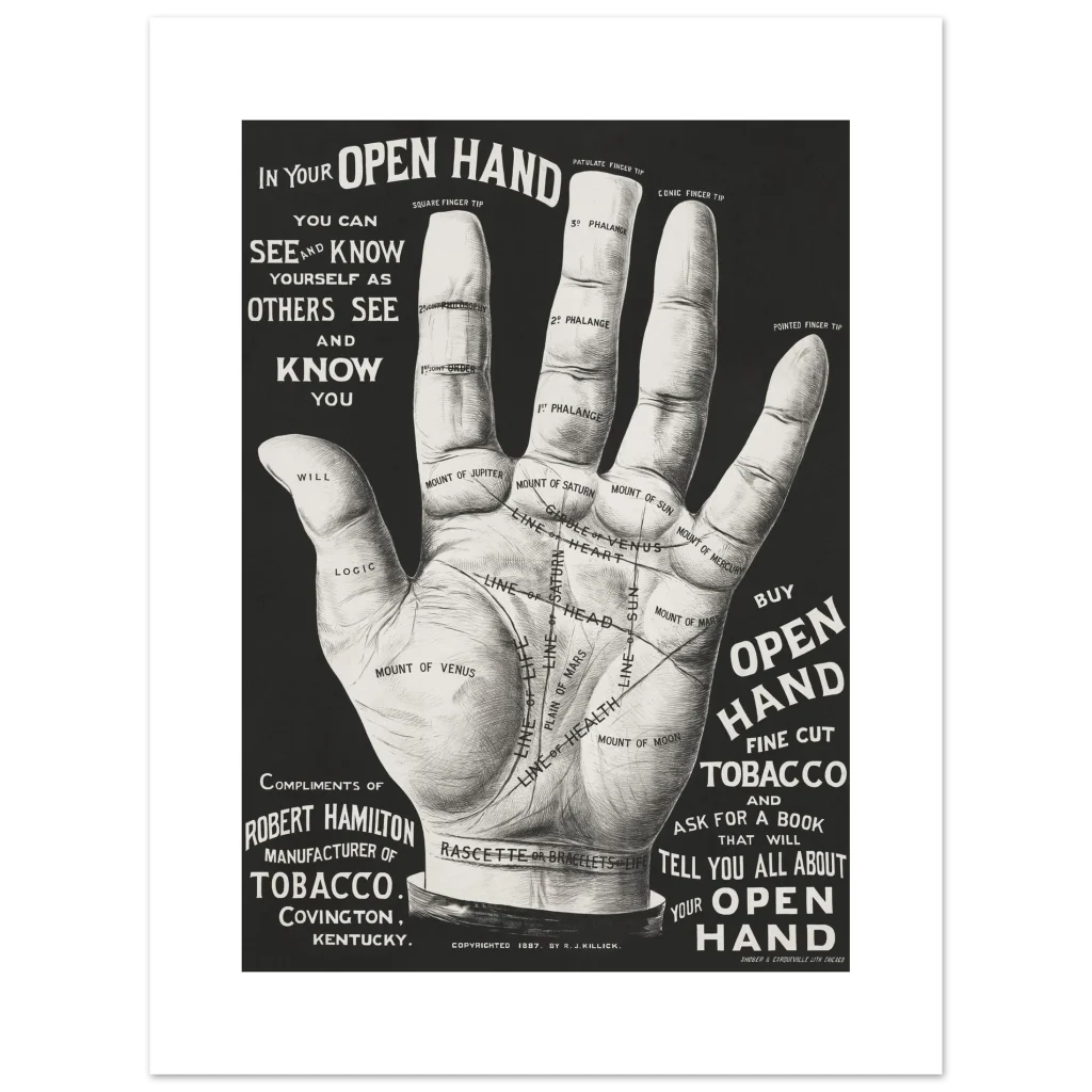 Vintage Palmistry Chart Poster: ‘In Your Open Hand’ — Premium Matte Print for Mystical Decor