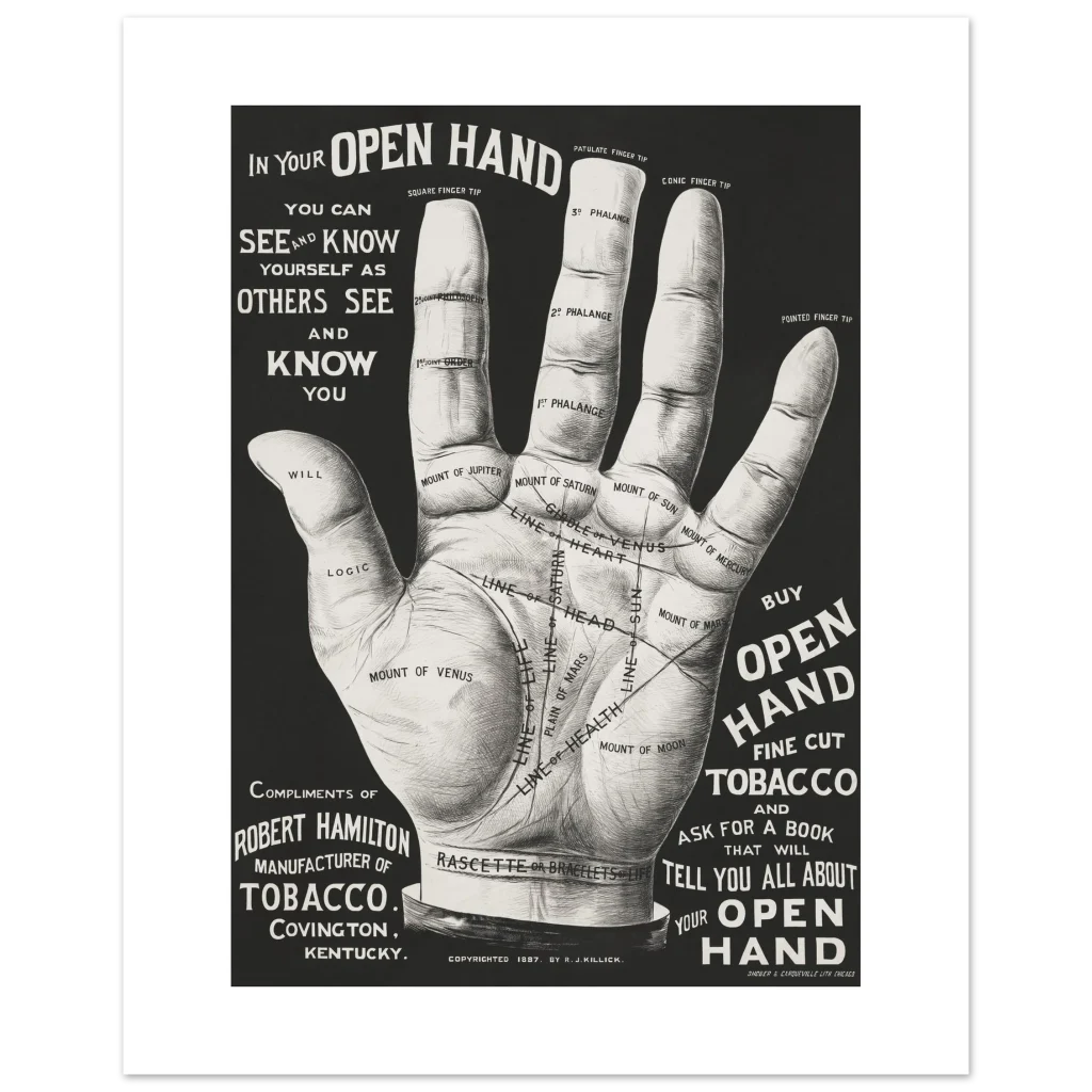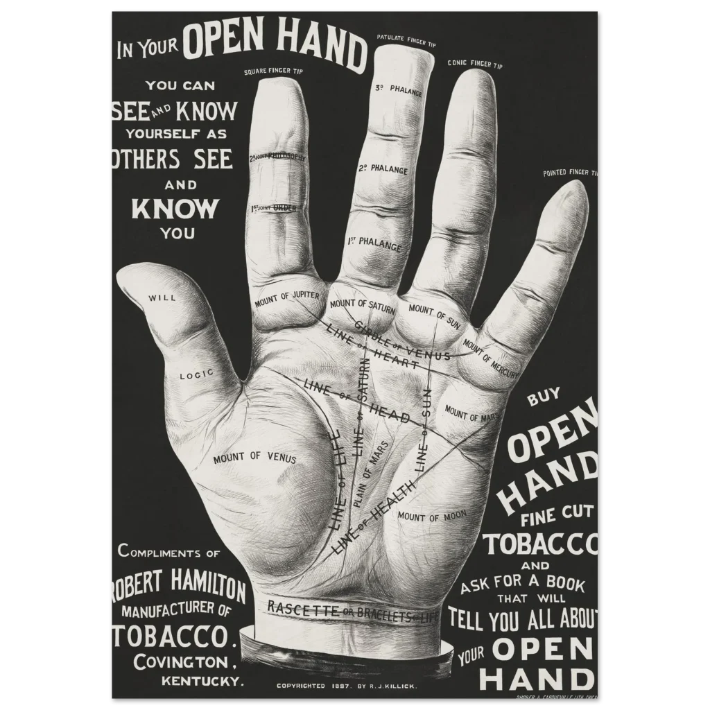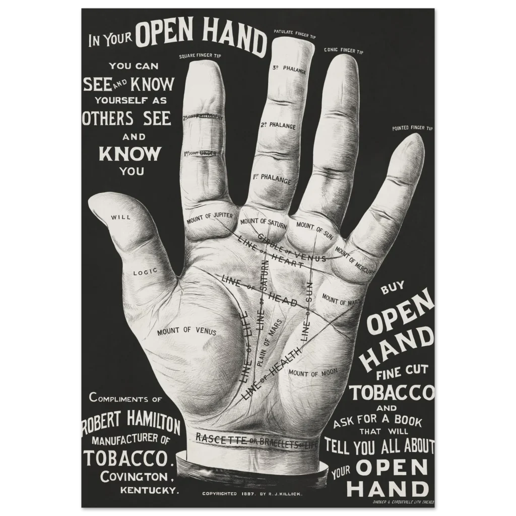 Vintage Palmistry Chart Poster: ‘In Your Open Hand’ — Premium Matte Print for Mystical Decor