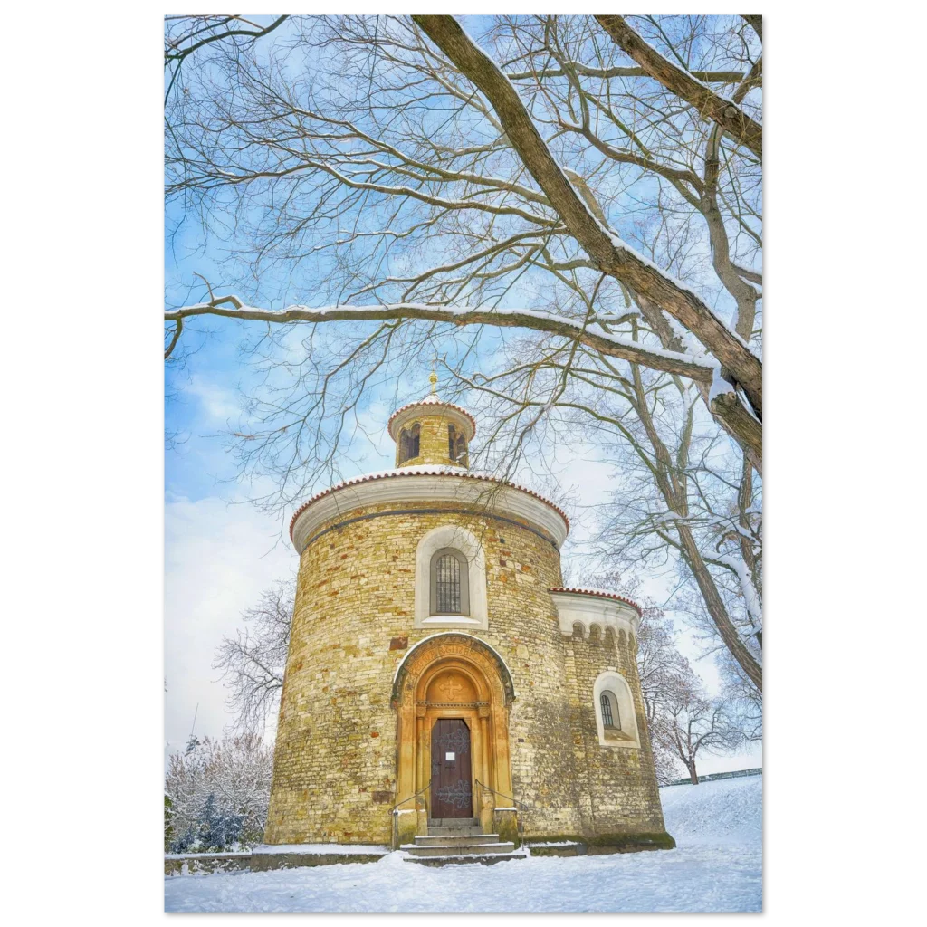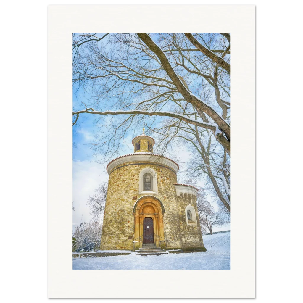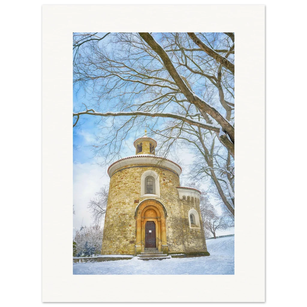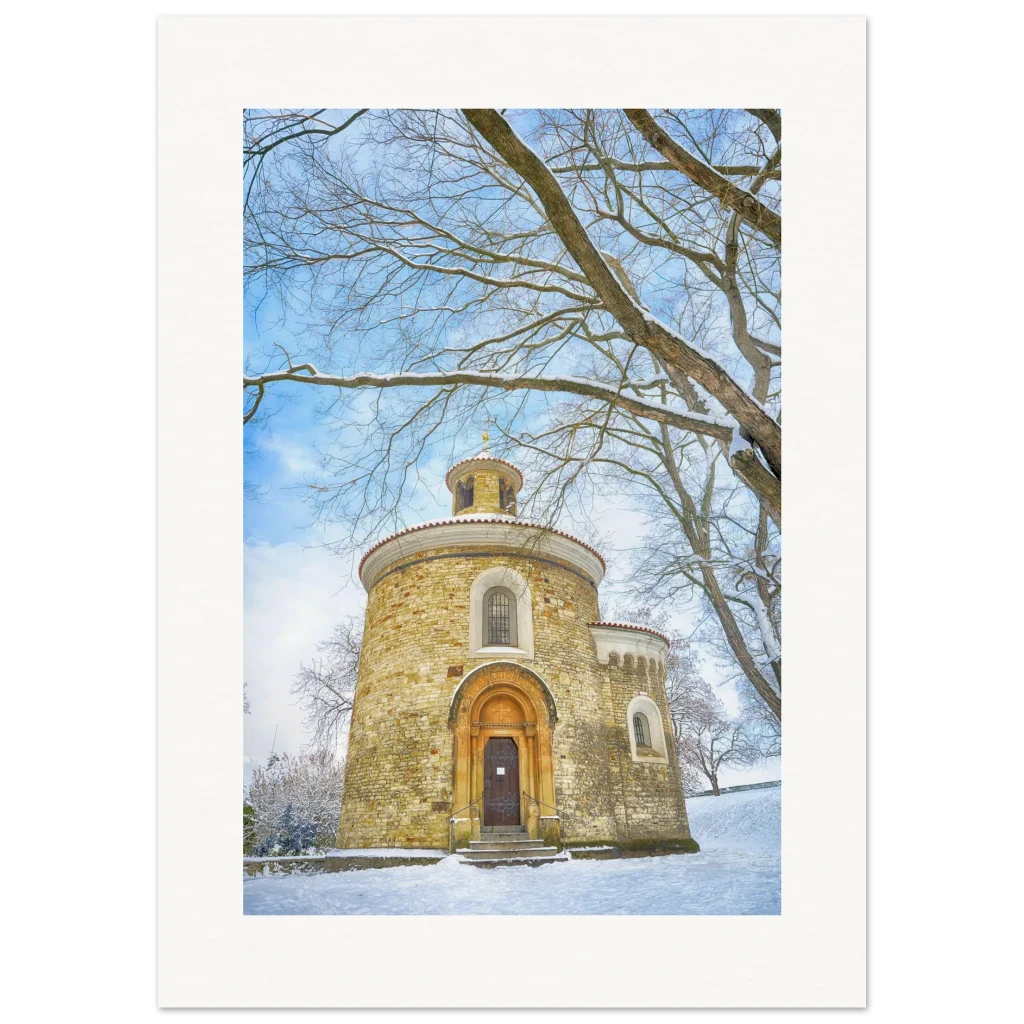 Winter Serenity: Ancient Chapel in Snow – Museum-Quality Matte Paper Poster