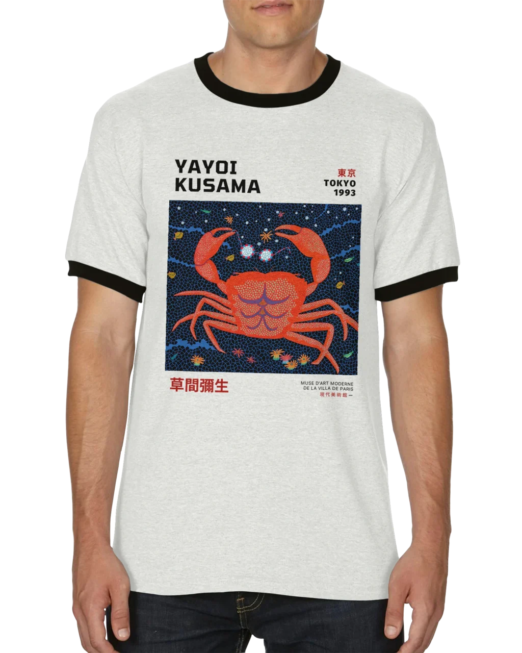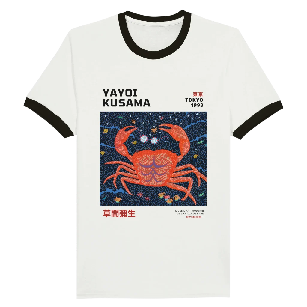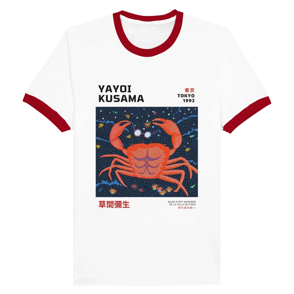 Yayoi Kusama-Inspired ‘Tokyo 1993’ Crab Unisex Ringer T-shirt – Choose Your Color & Size!