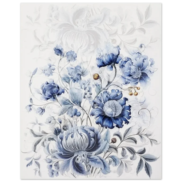 Chinoiserie Floral Tapestry Art Print – Premium Matte Paper Poster with Vibrant Bloom & Vine Motif